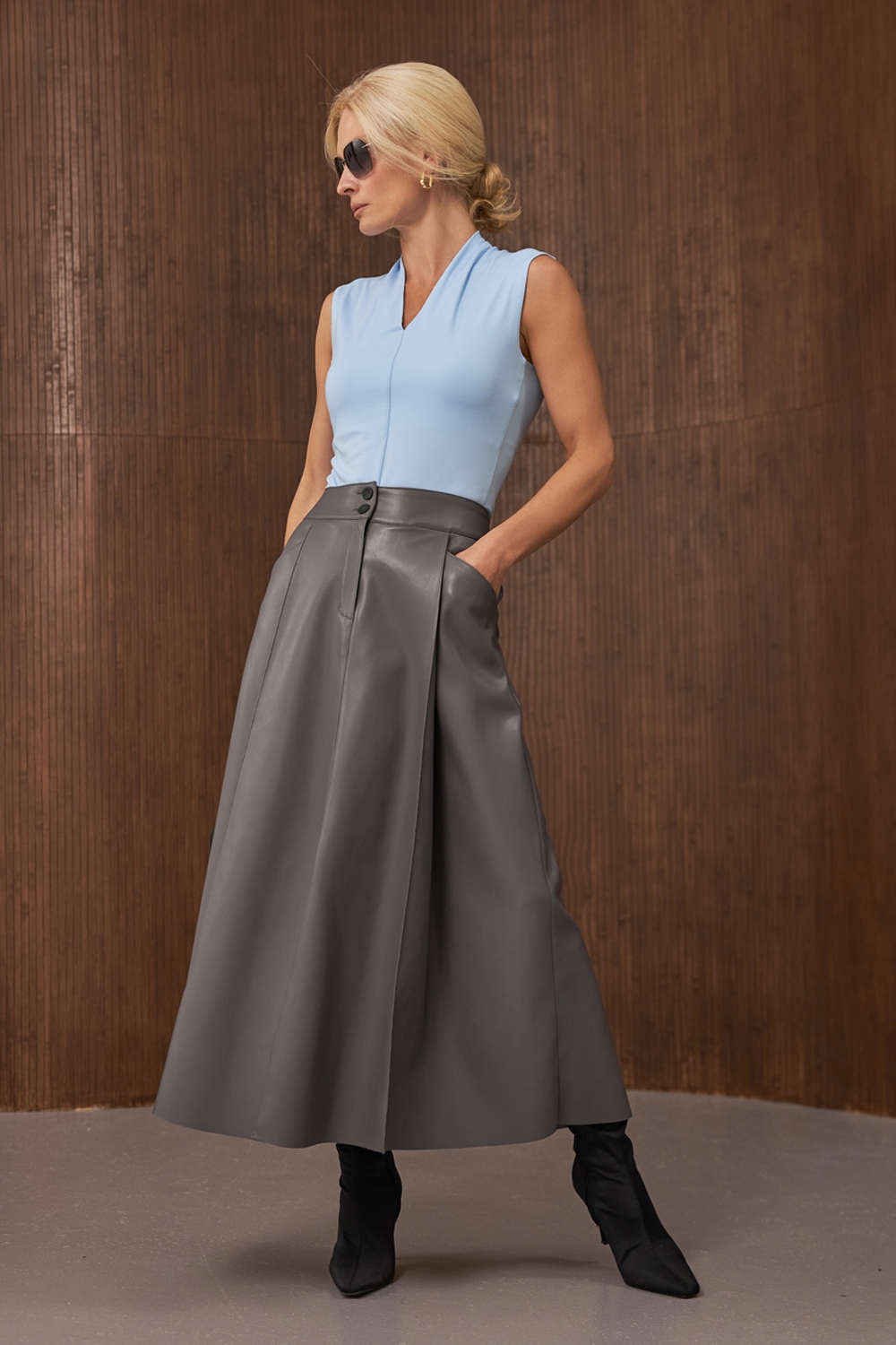 Елегантний боді, виготовлений із м’якої віскозної тканини з еластаном. V-подібний виріз і фігурний комірець позаду додають витонченості.