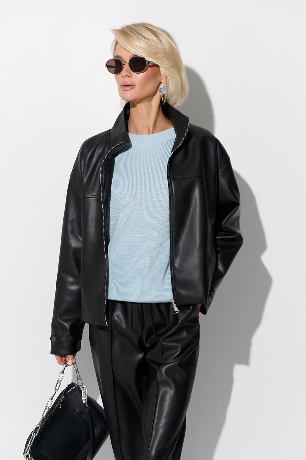 Трендовий бомбер із преміальної еко-шкіри. Лаконічний дизайн, вільний силует. Позаду виробу еластична резинка.