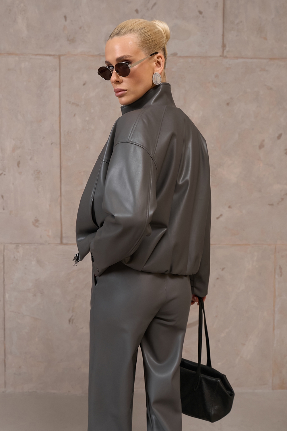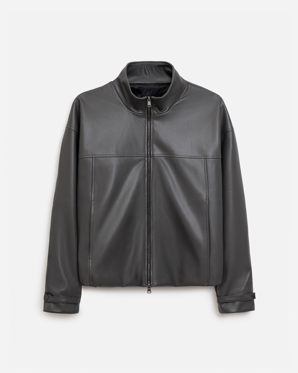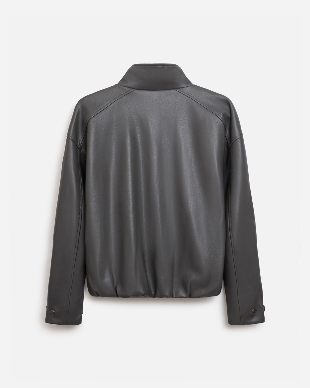 Трендовий бомбер із преміальної еко-шкіри. Лаконічний дизайн, вільний силует. Позаду виробу еластична резинка.