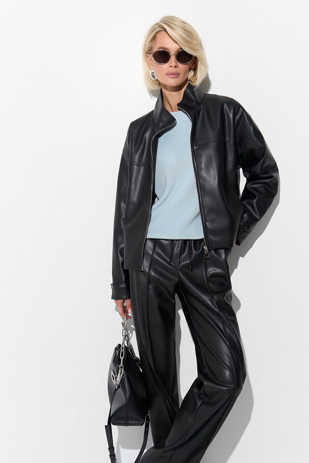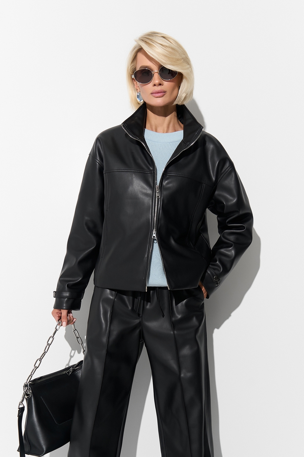Трендовий бомбер із преміальної еко-шкіри. Лаконічний дизайн, вільний силует. Позаду виробу еластична резинка.