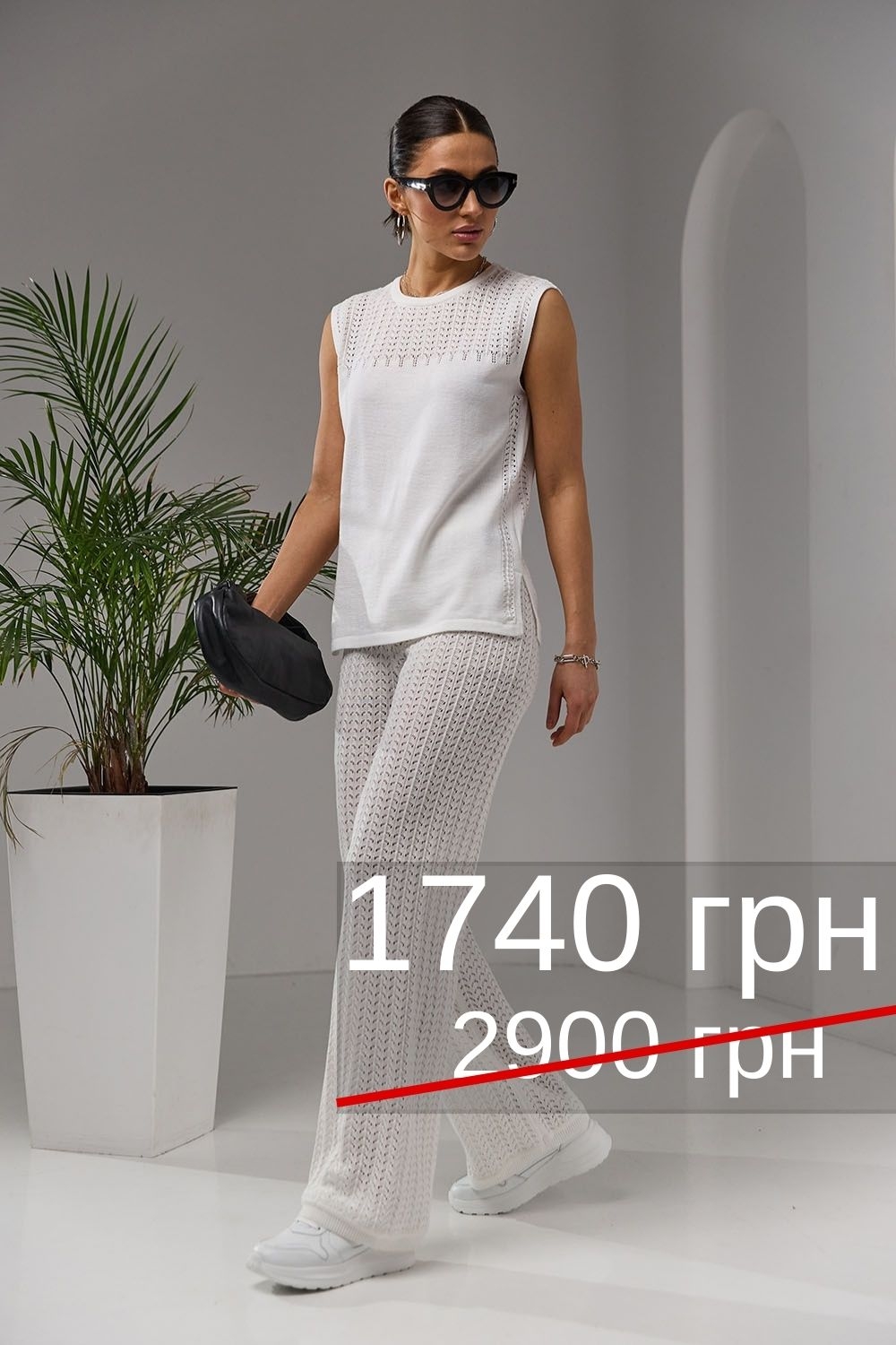 Ажурні літні штани виконані з натуральної пряжі із включенням бавовни та віскози. Стильний малюнок переплетення візуально витягує і спокусливо підкреслює фігуру. Еластичний м'який пояс, трикотажні шорти-підкладка.