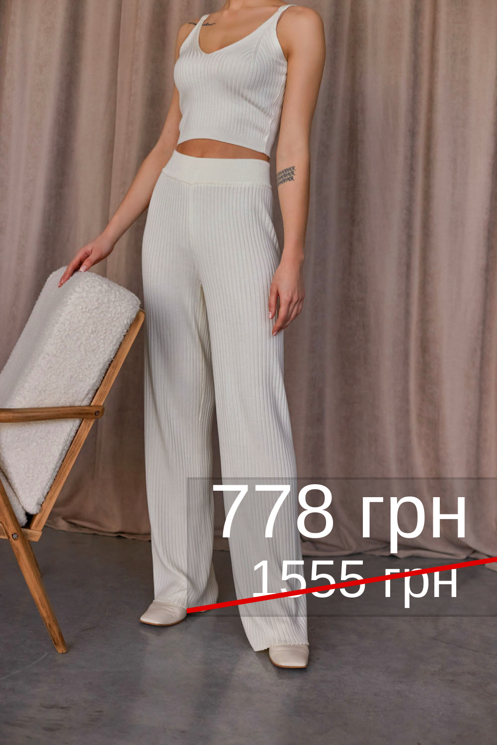 Стильні весняно-літні брюки у рубчик з приємної до тіла пряжі з включенням бавовни та віскози.