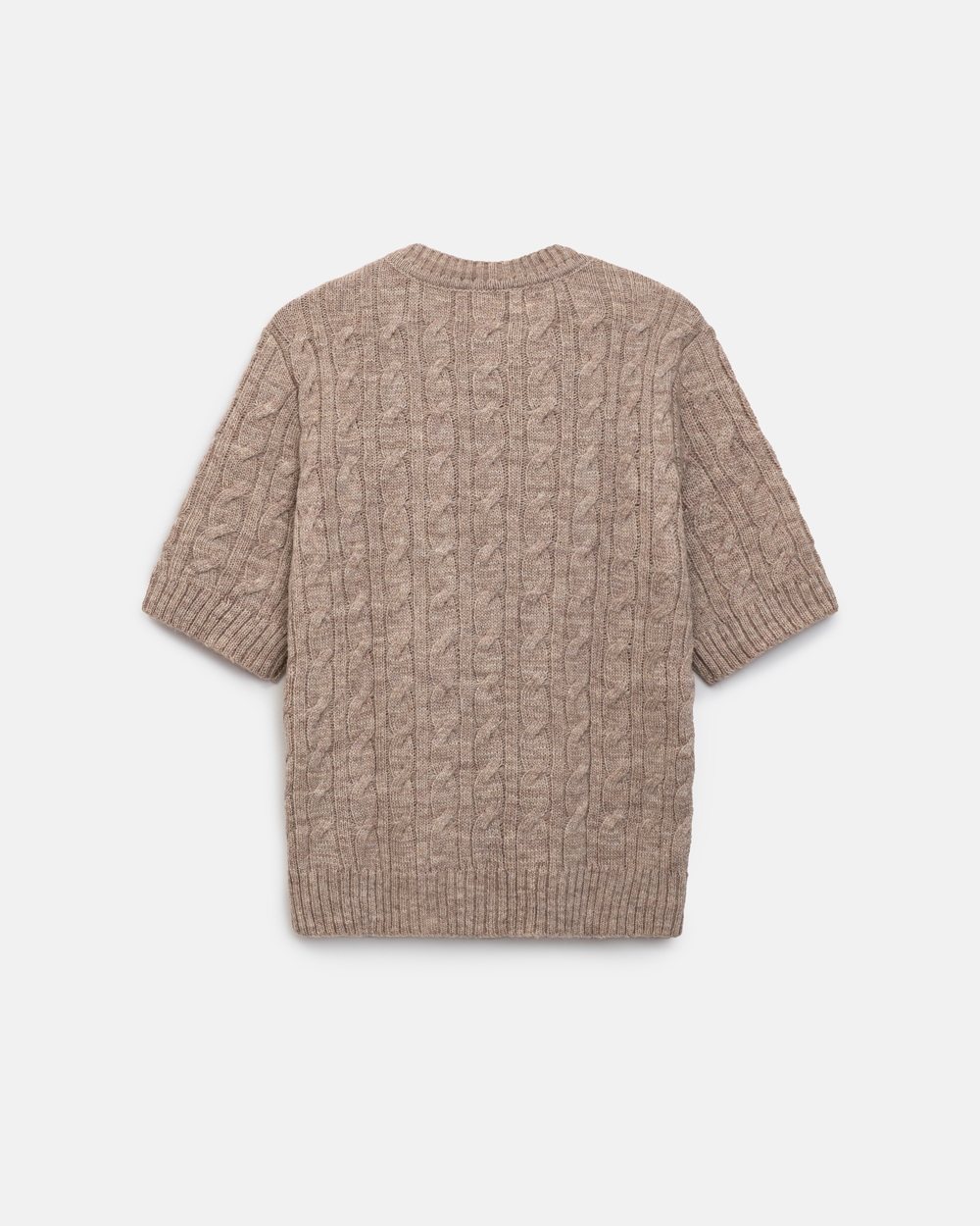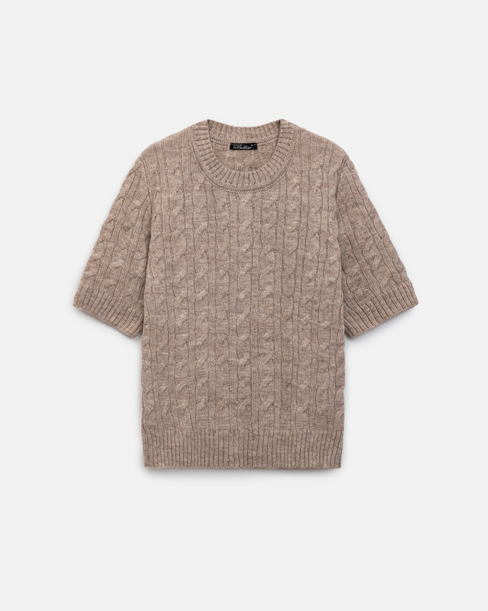 Джемпер з коротким рукавом з акцентним візерунком «коси». Модель м’яка на дотик і приємна до тіла, виготовлена з пряжі з додаванням вовни мериноса та альпаки.