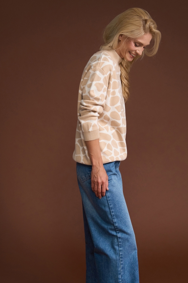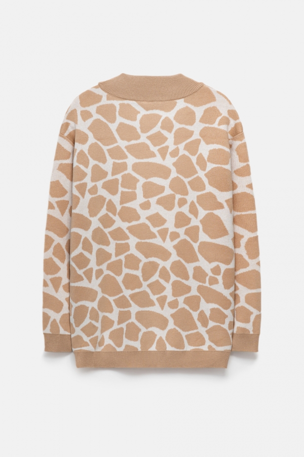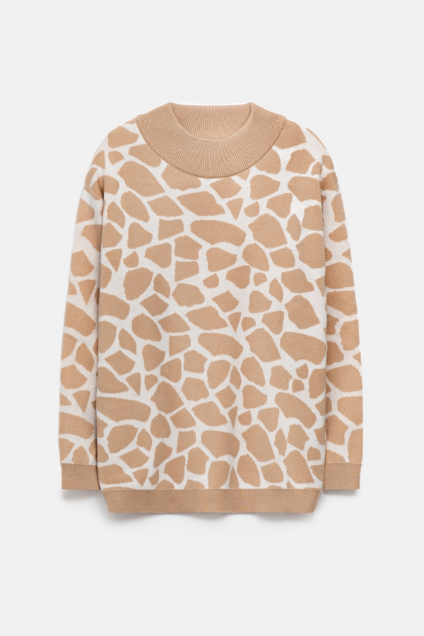 Стильний джемпер з оригінальним принтом «жираф» виготовлений з м’якої бавовняної пряжі з додаванням віскози, щільним гладким плетінням.