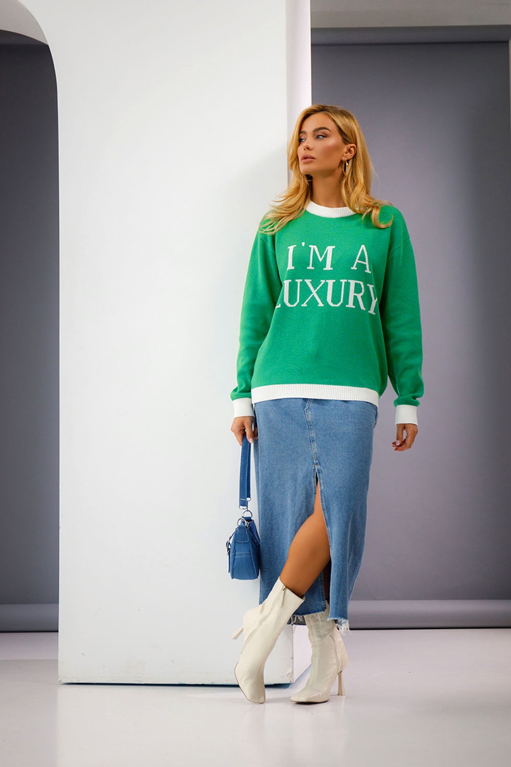 Джемпер вільного силуету з круглою горловиною та спущеною лінією плеча виконаний із натуральної бавовняної пряжі з додаванням віскози. Комфортний демісезонний джемпер для повсякденного носіння та активного життя.