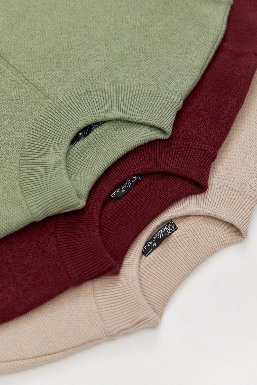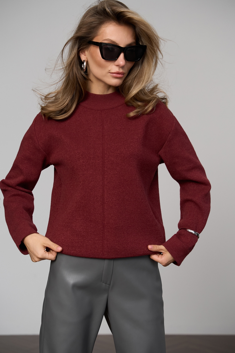 Джемпер вільного крою з м'якої та приємної до тіла пряжі із включенням еластану. Комфортна лінія плеча, охайний еластичний комір-стійка, розслаблені манжети по низу рукавів та виробу.