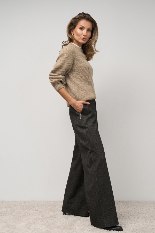Ніжний джемпер з супертонкої вовняної пряжі люксової якості. Виконаний в гладкому переплетенні. Комфортний круглий виріз горловини оформлений лаконічною охайною стійкою, спущений рукав.