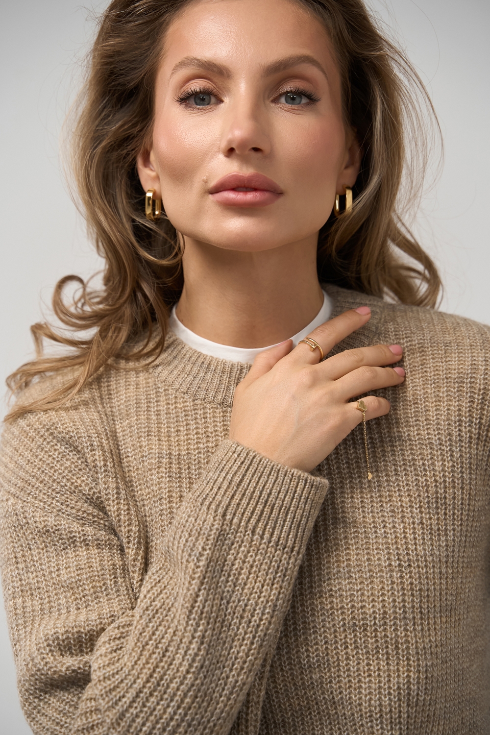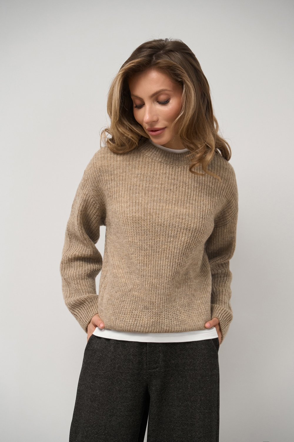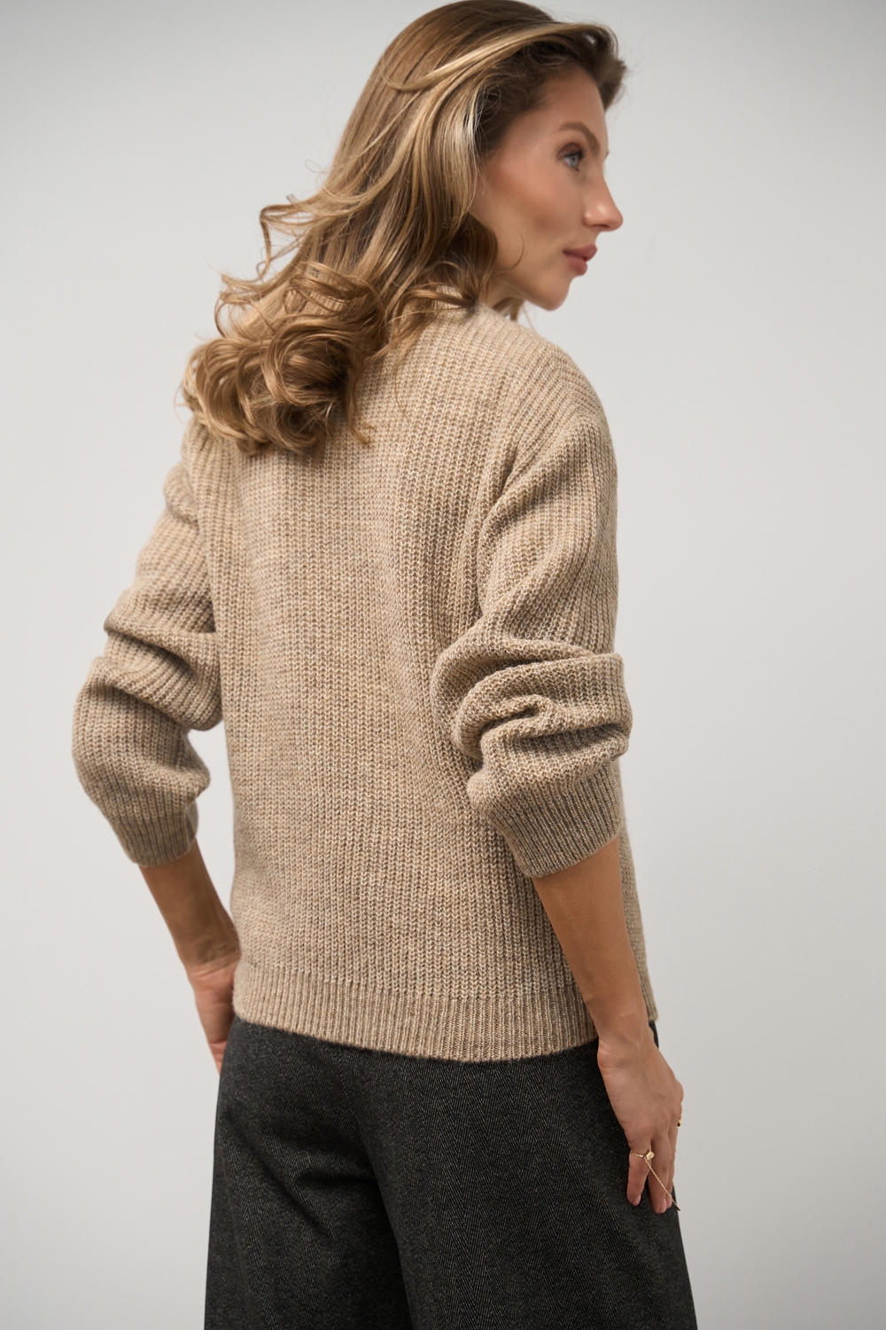 Ніжний джемпер з супертонкої вовняної пряжі люксової якості. Виконаний в гладкому переплетенні. Комфортний круглий виріз горловини оформлений лаконічною охайною стійкою, спущений рукав.