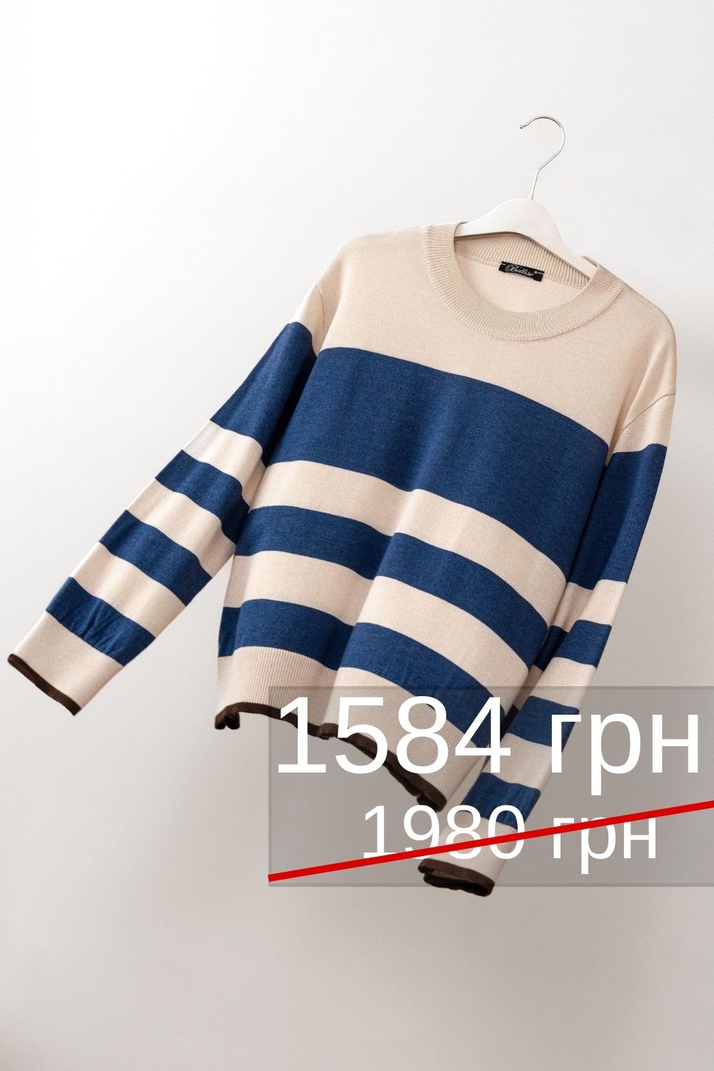 Джемпер у смужку з шовковистої віскозної пряжі. Вільний силует, комфортний рукав, що повторює основний колірний малюнок.