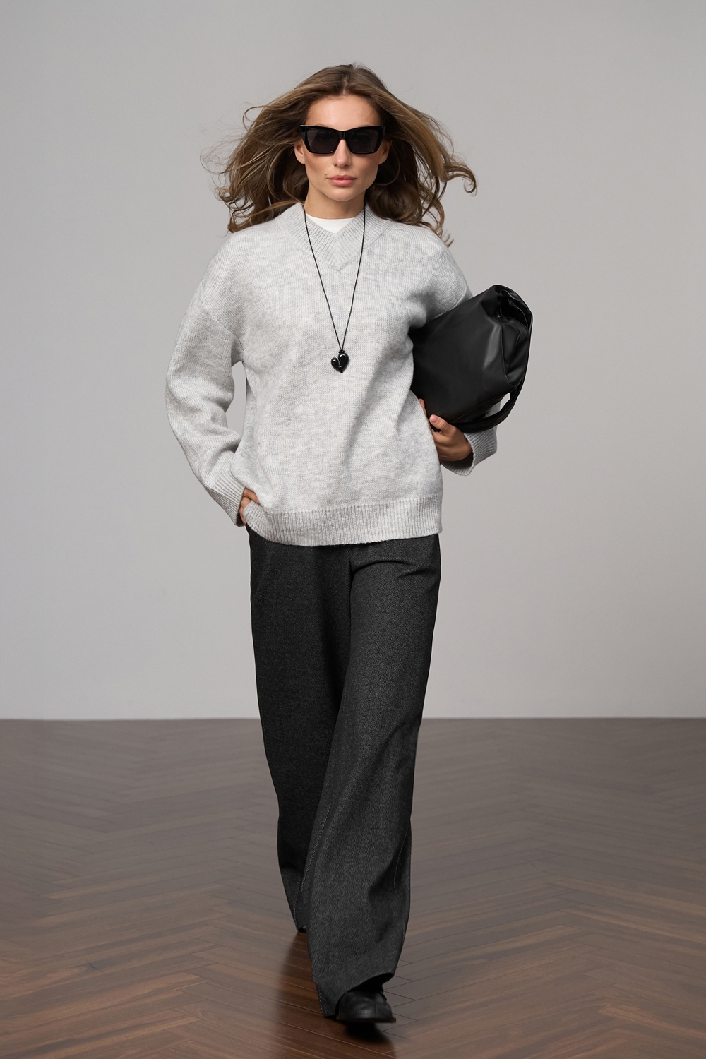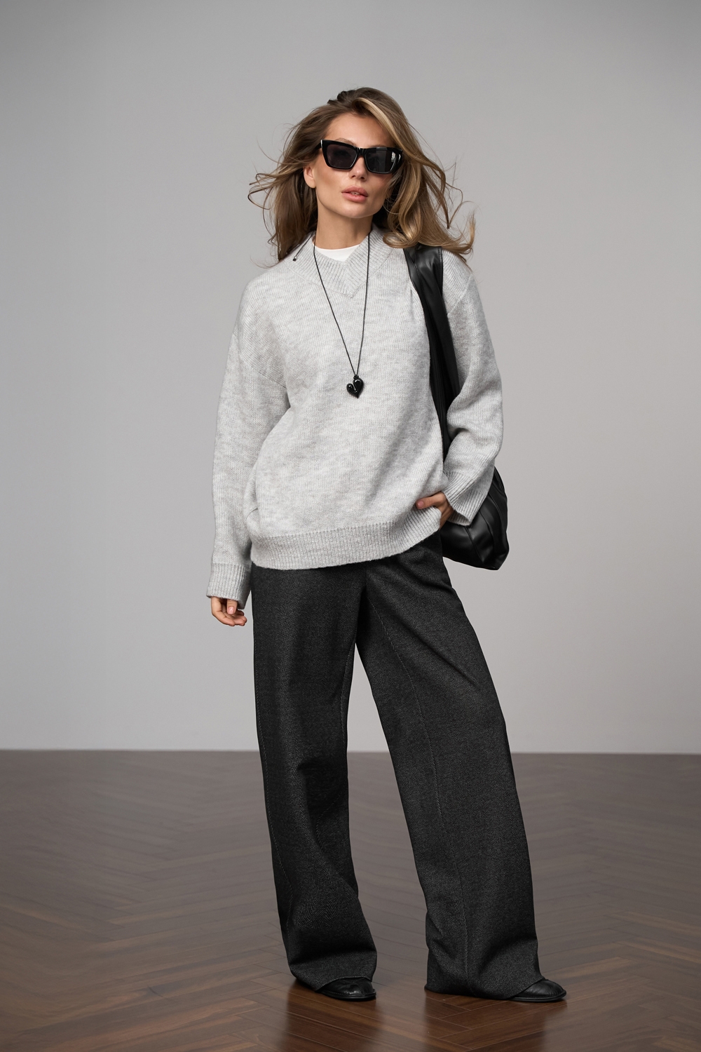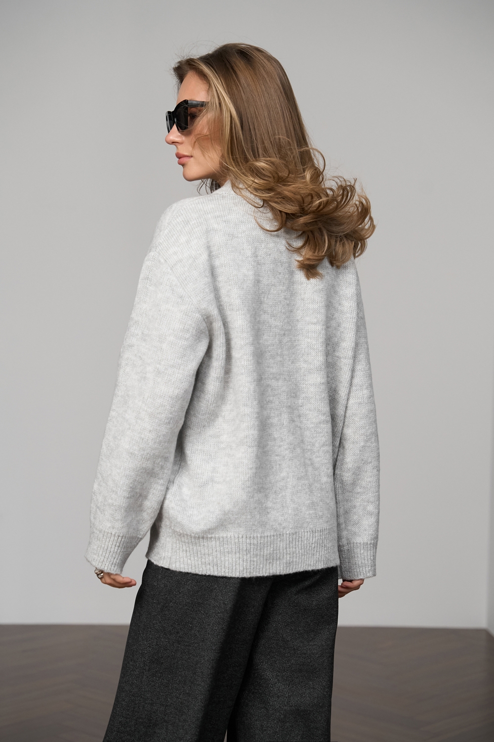 Джемпер вільного крою з преміальної вовняної пряжі з вмістом мохеру. Об'ємний силует, гладка в'язка, комфортна v-подібна горловина.