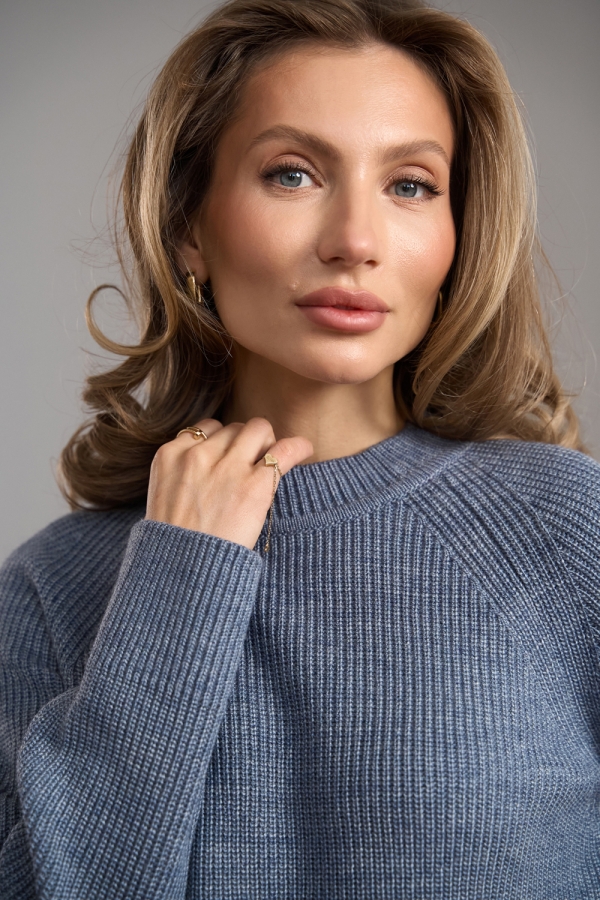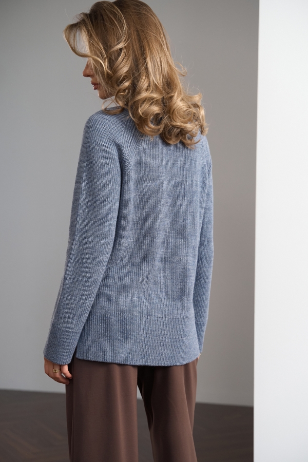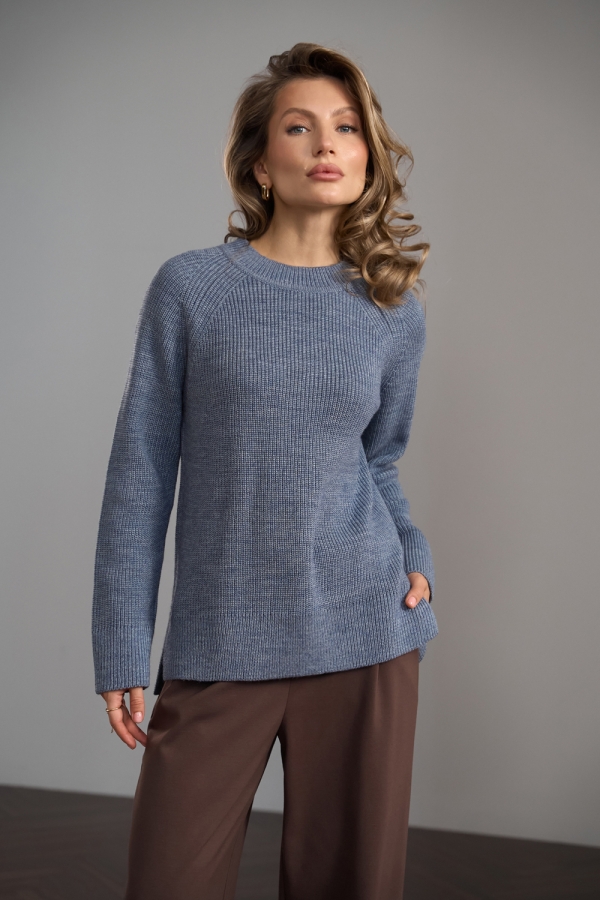 Об'ємний, м'який джемпер прямого силуету. Виготовлений із напіввовняної пряжі з фактурним плетенням.