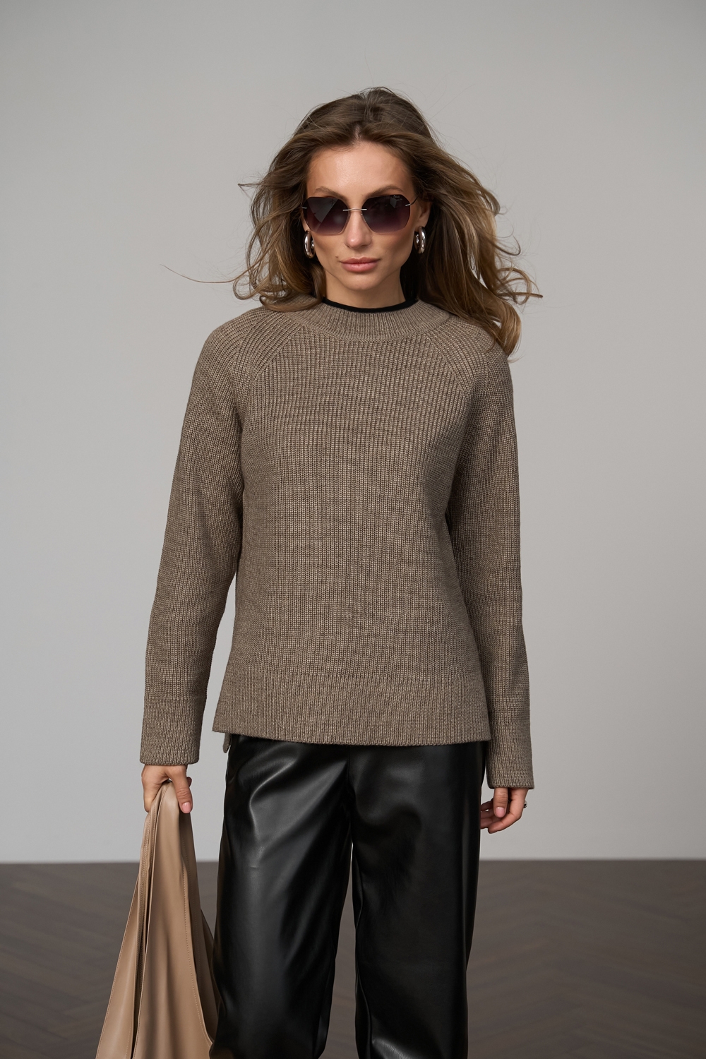 Затишний джемпер прямого силуету. Виготовлений із напіввовняної пряжі з фактурним плетенням.
