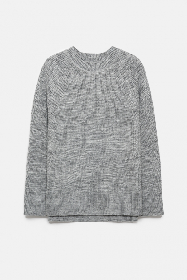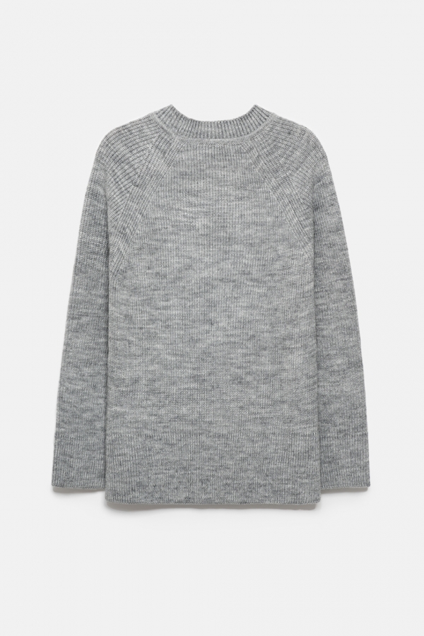 Об'ємний, м'який джемпер прямого силуету. Виготовлений із напіввовняної пряжі з фактурним плетенням.
