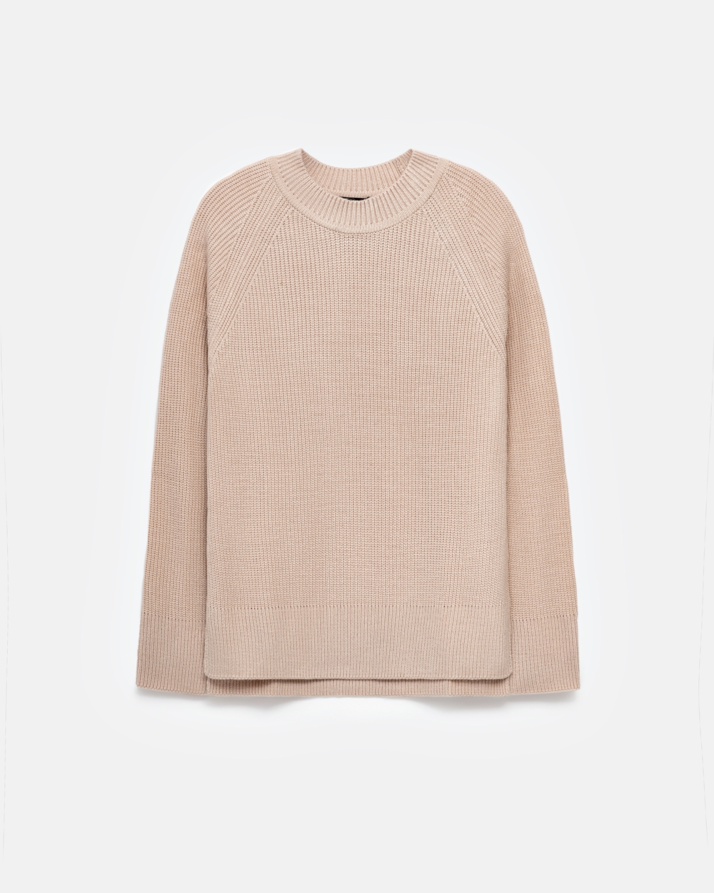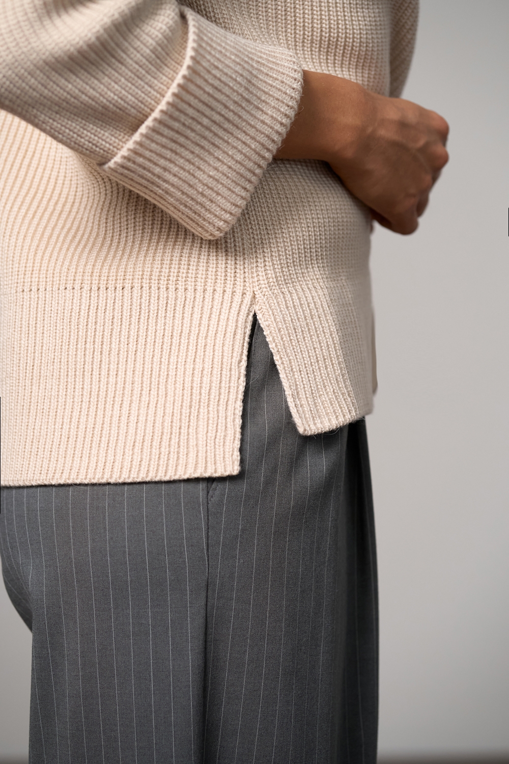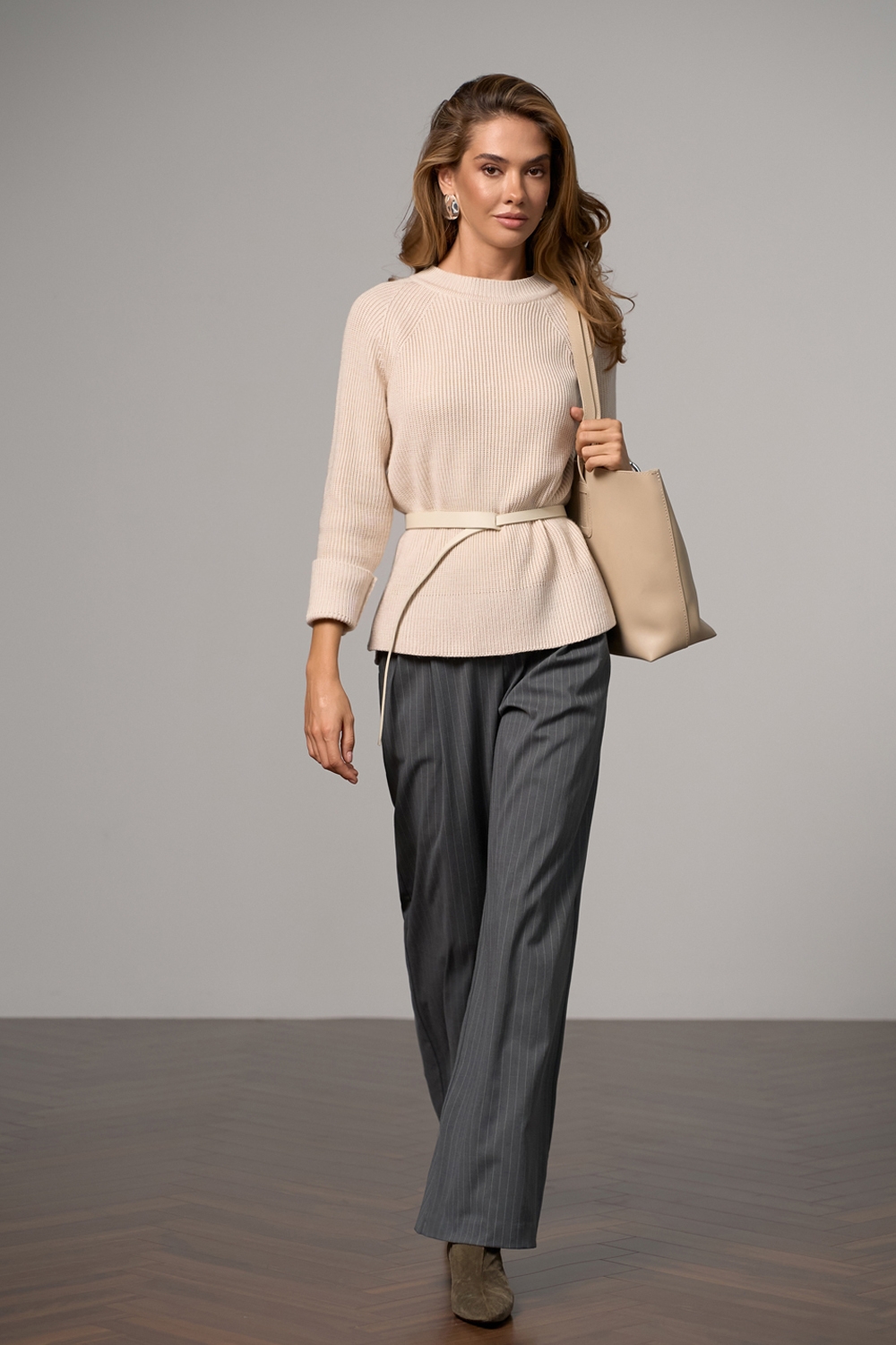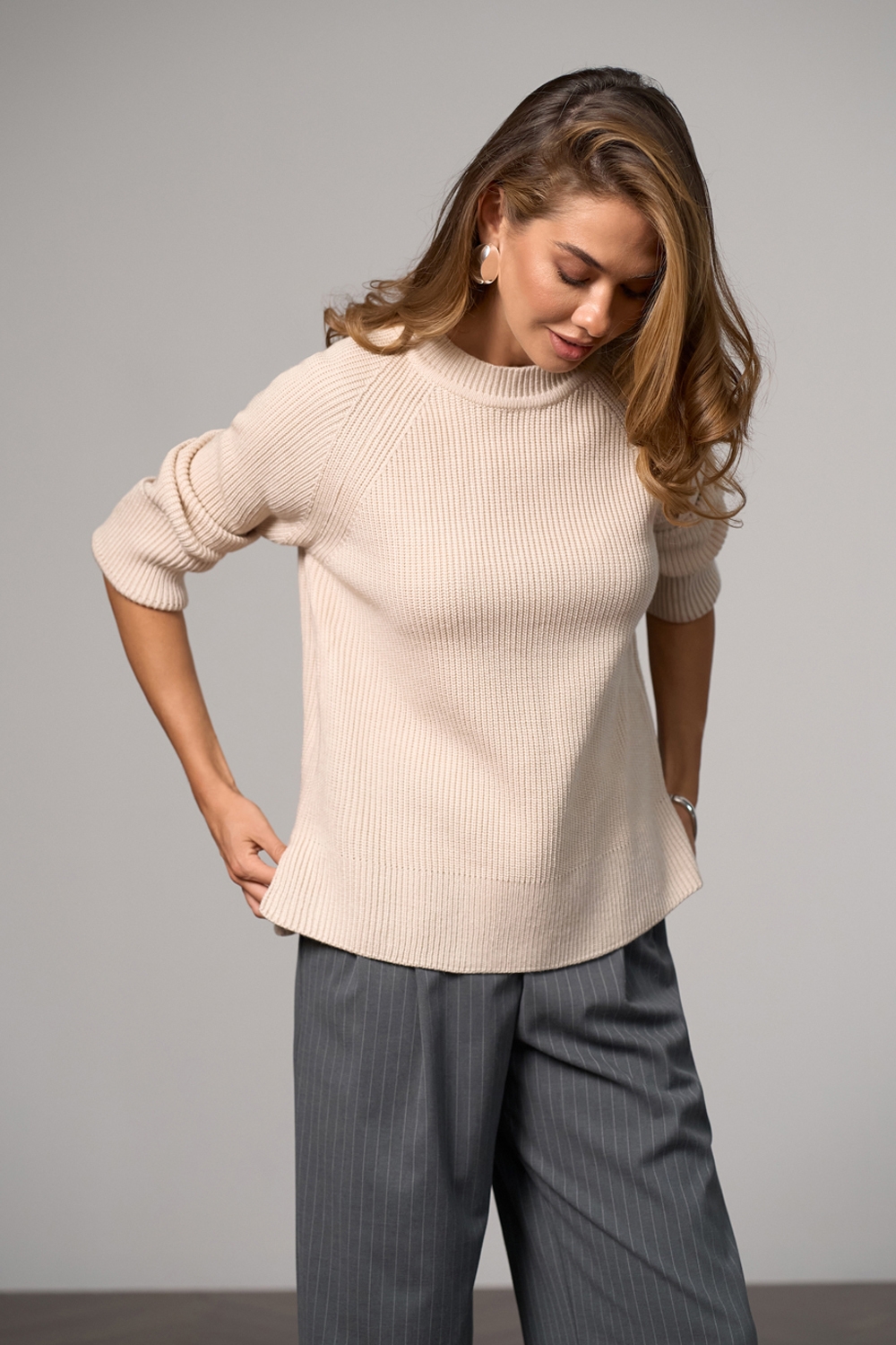 Затишний джемпер прямого силуету. Виготовлений із напіввовняної пряжі з фактурним плетенням.