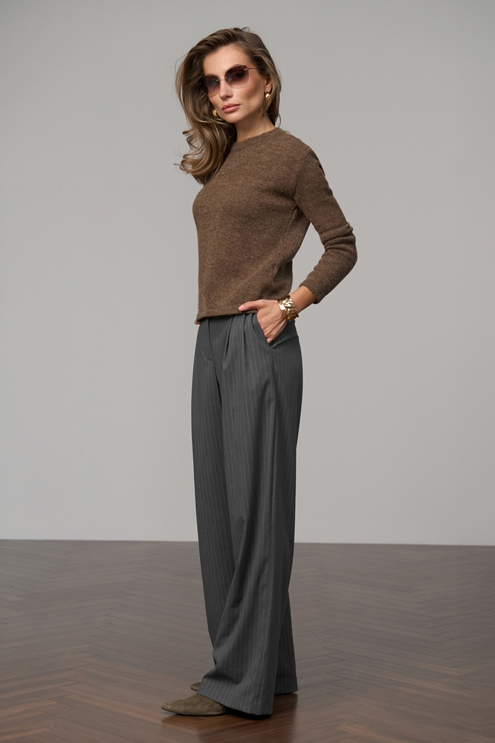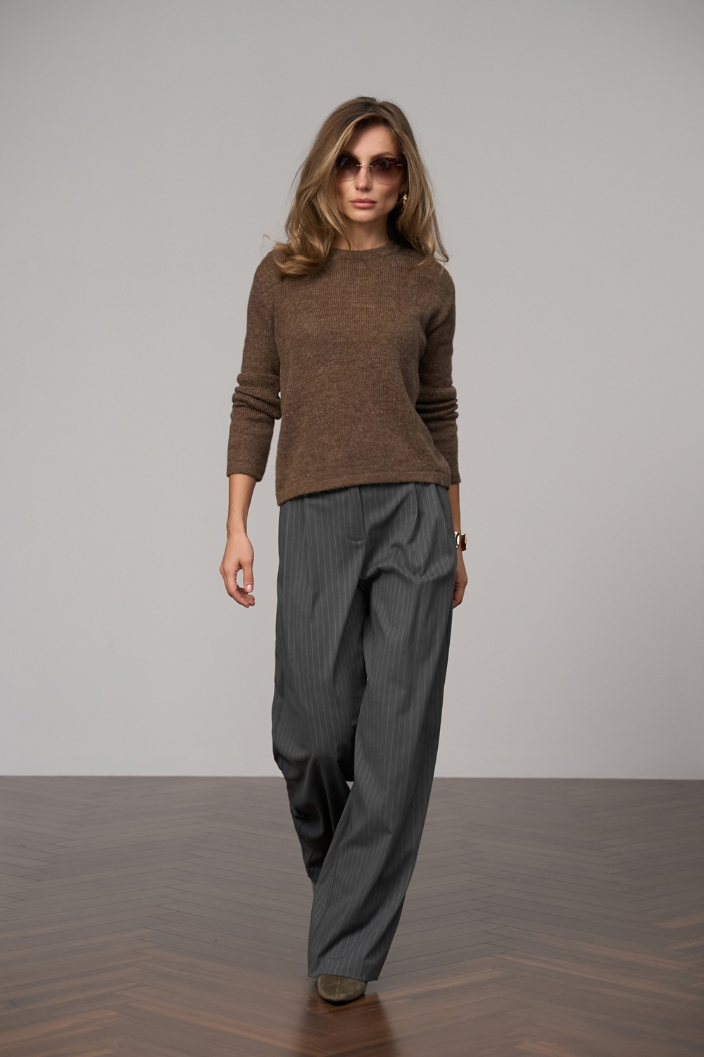 Стильний та універсальний джемпер із преміальної пряжі середньої еластичності. За рахунок високого вмісту вовни та мохеру джемпер теплий, м'який та приємний до тіла.
