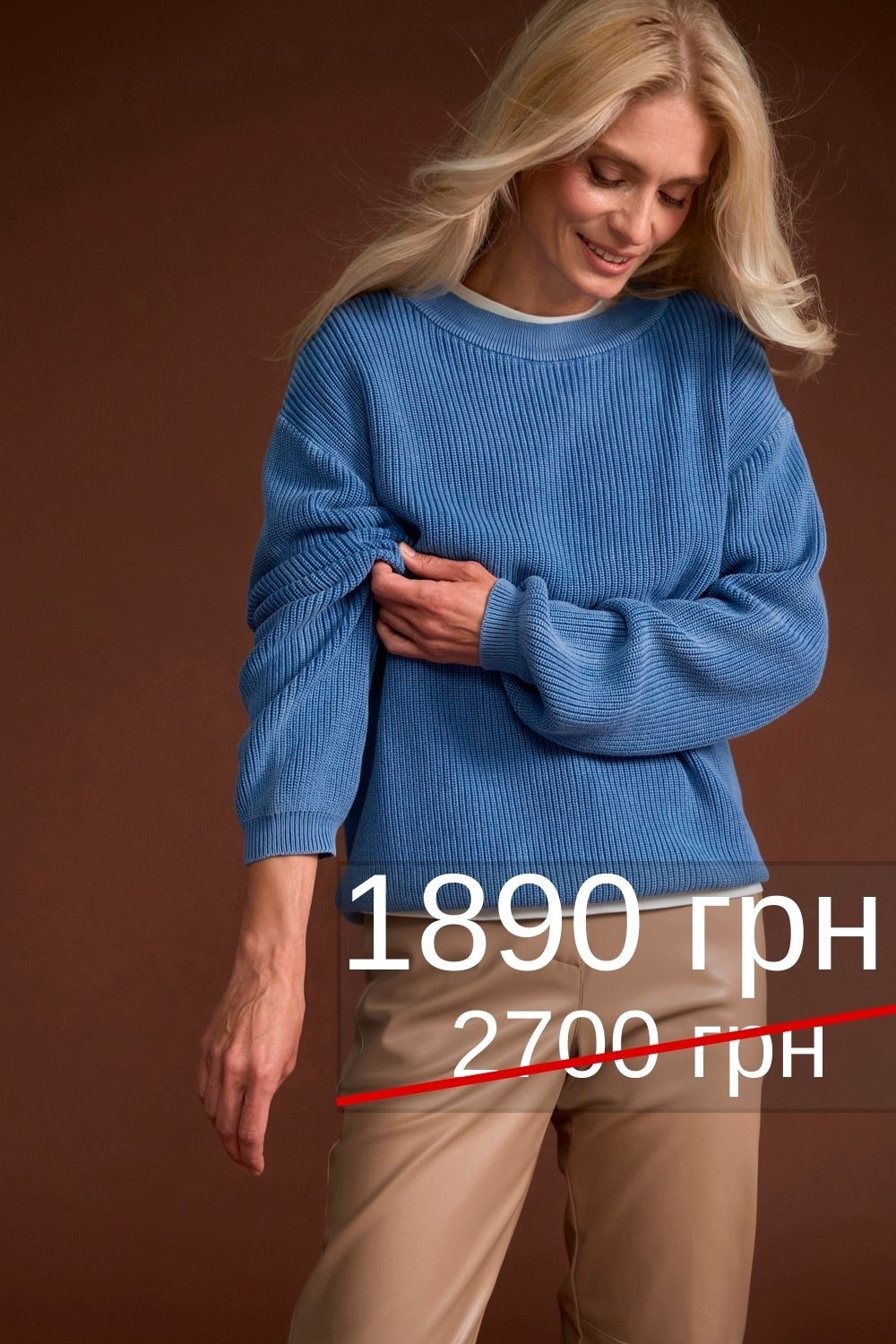 Базовий джемпер виготовлений із натуральної бавовняною пряжі в гладкому переплетенні. Виріб середньої щільності, м'який та приємний до тіла.