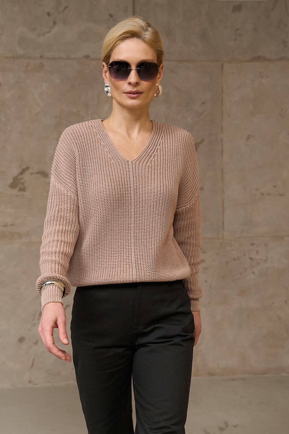 На свій ОГ 102-104 я взяла розмір 42-46 і отримала саме те що хотіла. Сіло ідеально - саме так як я хотіла - не облягає і не овер. Колір неймовірно красивий - такий вишуканий і елегантний.