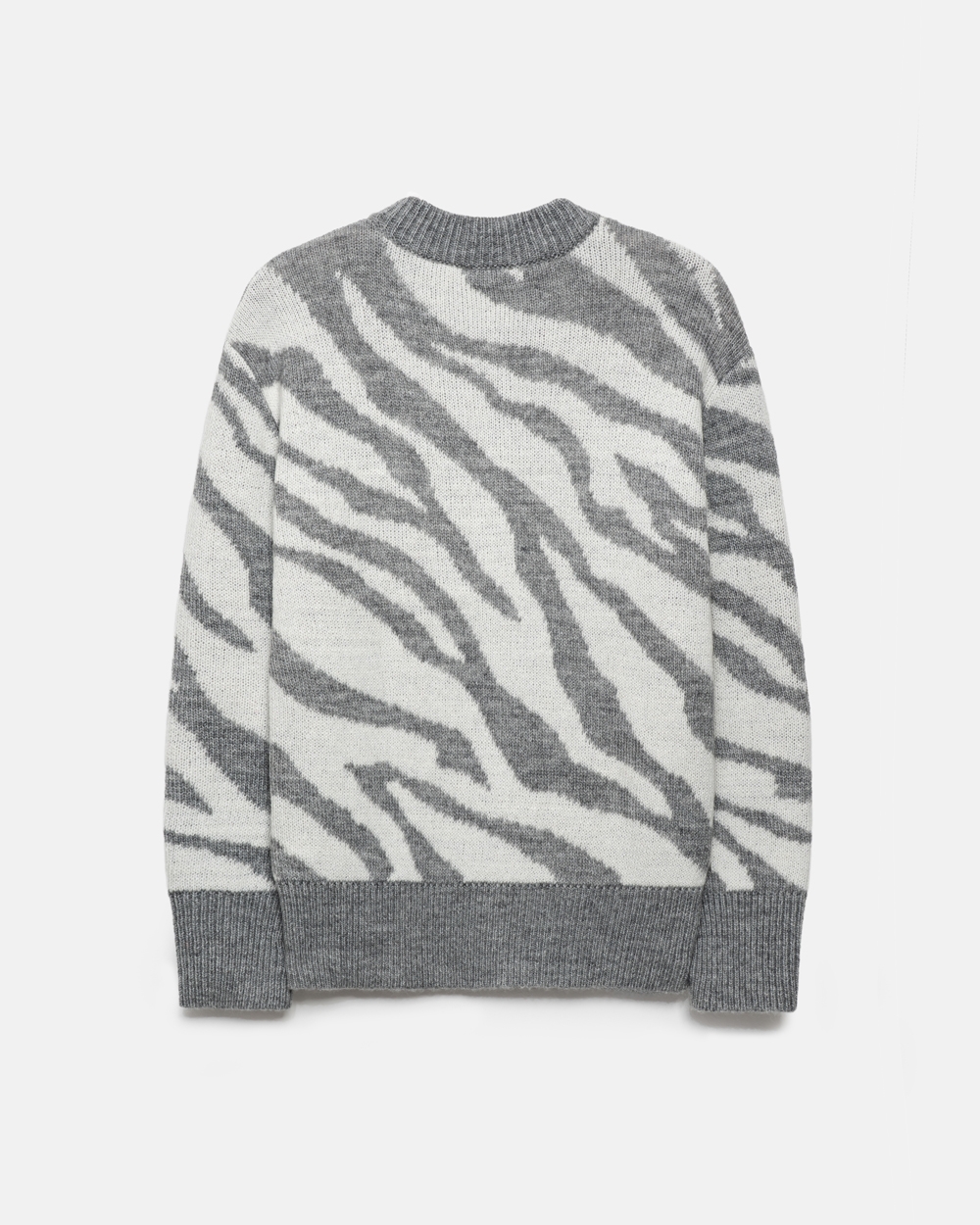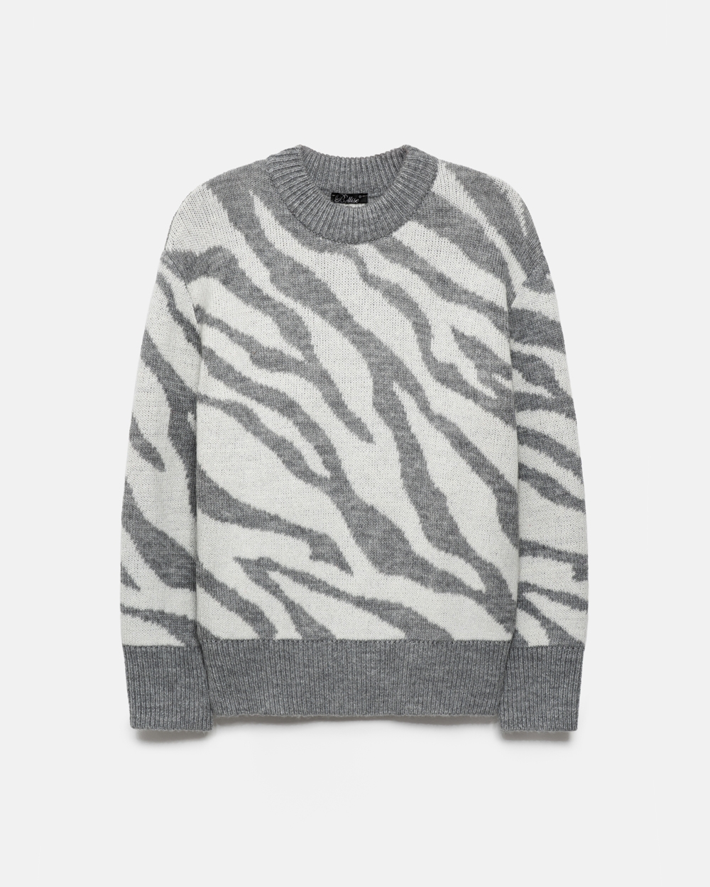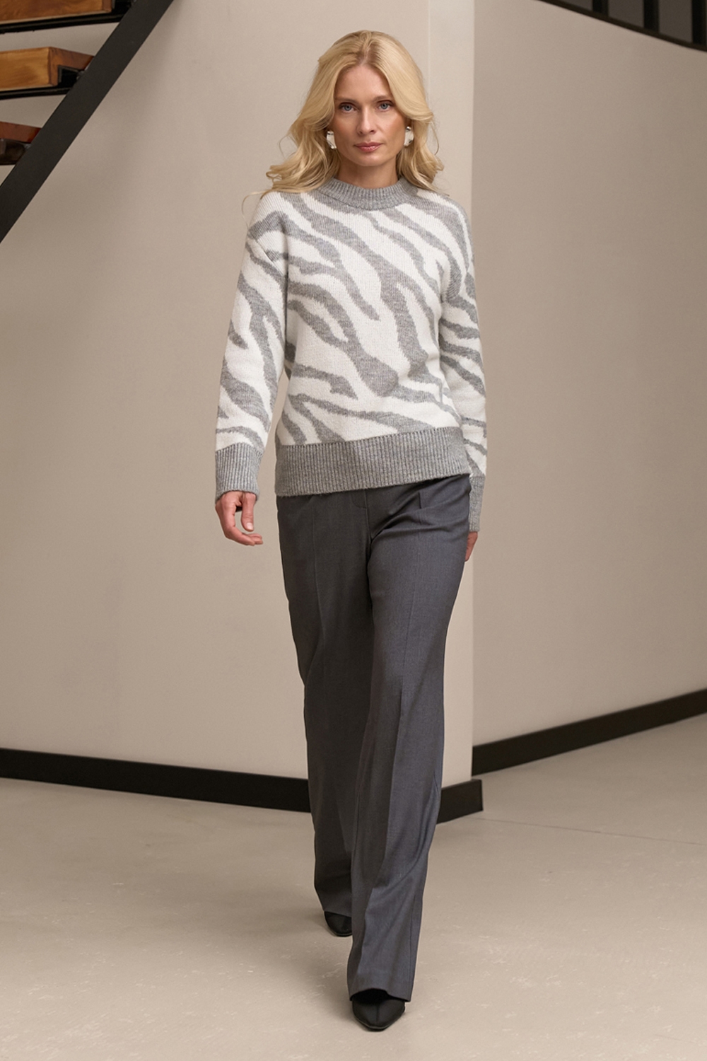Стильний джемпер з анімалістичним принтом виконаний в гладкому переплетенні із преміальної пряжі з високим вмістом вовни мериноса, альпаки та мохеру.