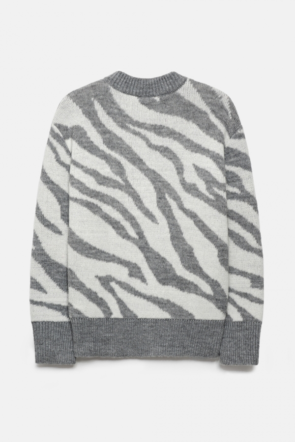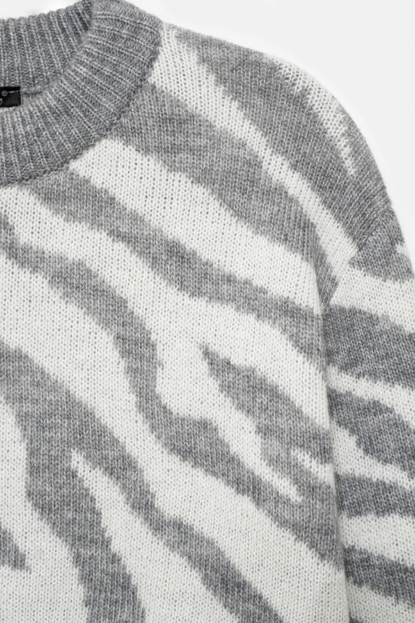 Стильний джемпер з анімалістичним принтом виконаний в гладкому переплетенні із преміальної пряжі з високим вмістом вовни мериноса, альпаки та мохеру.