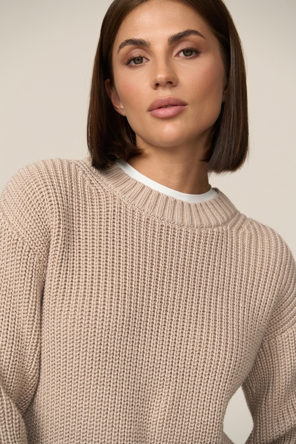 Базовий джемпер виконаний із бавовняної пряжі із додаванням віскози в щільному, об'ємному переплетенні.