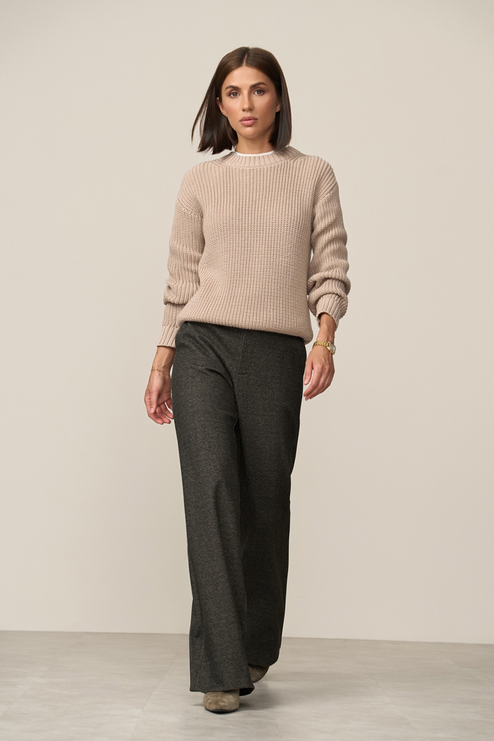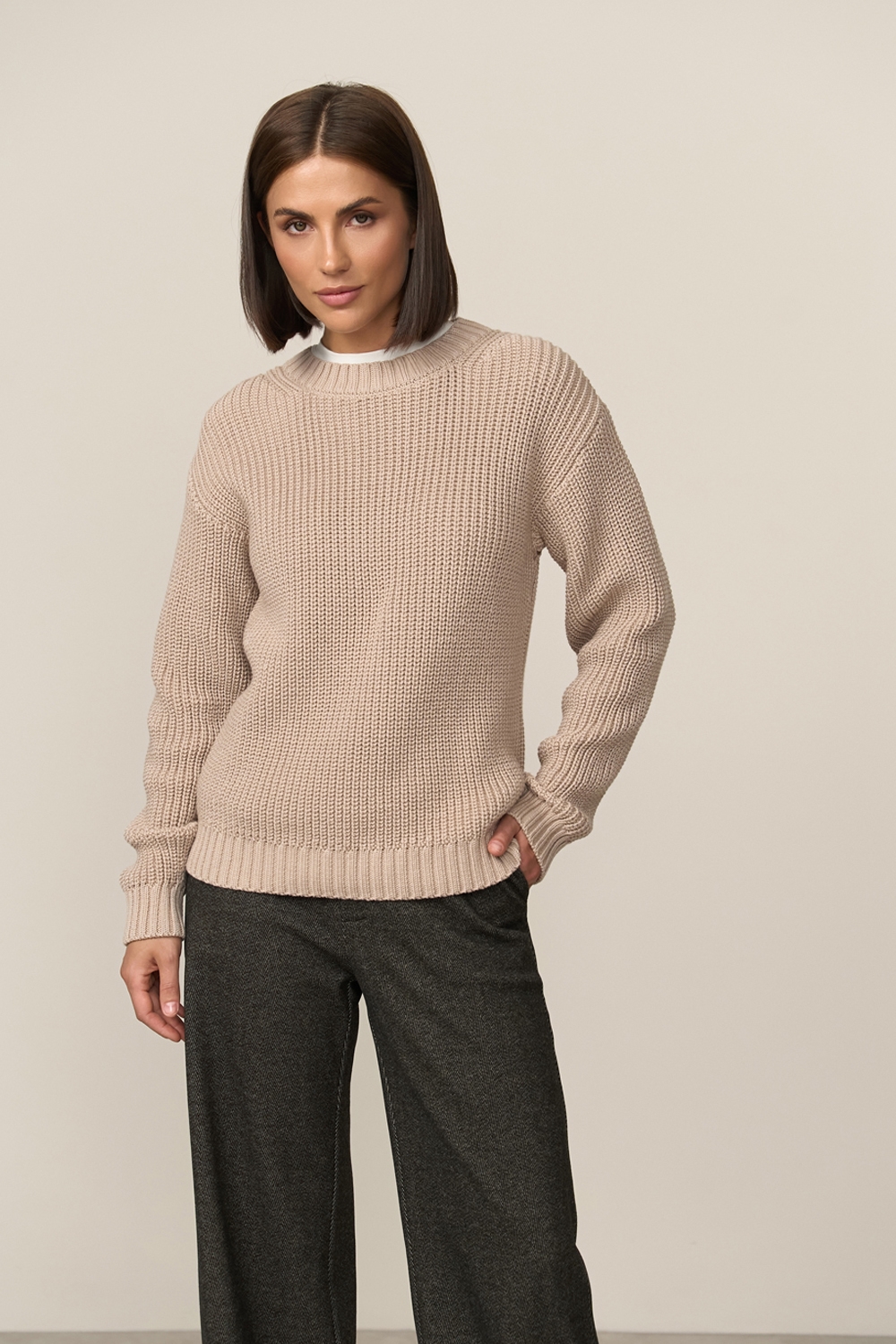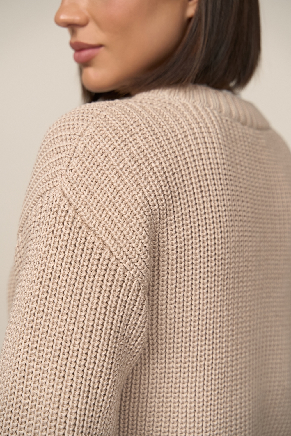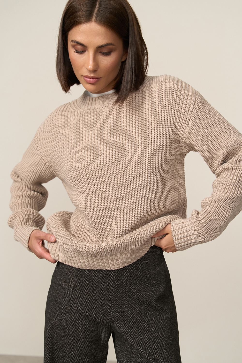 Базовий джемпер виконаний із бавовняної пряжі із додаванням віскози в щільному, об'ємному переплетенні.