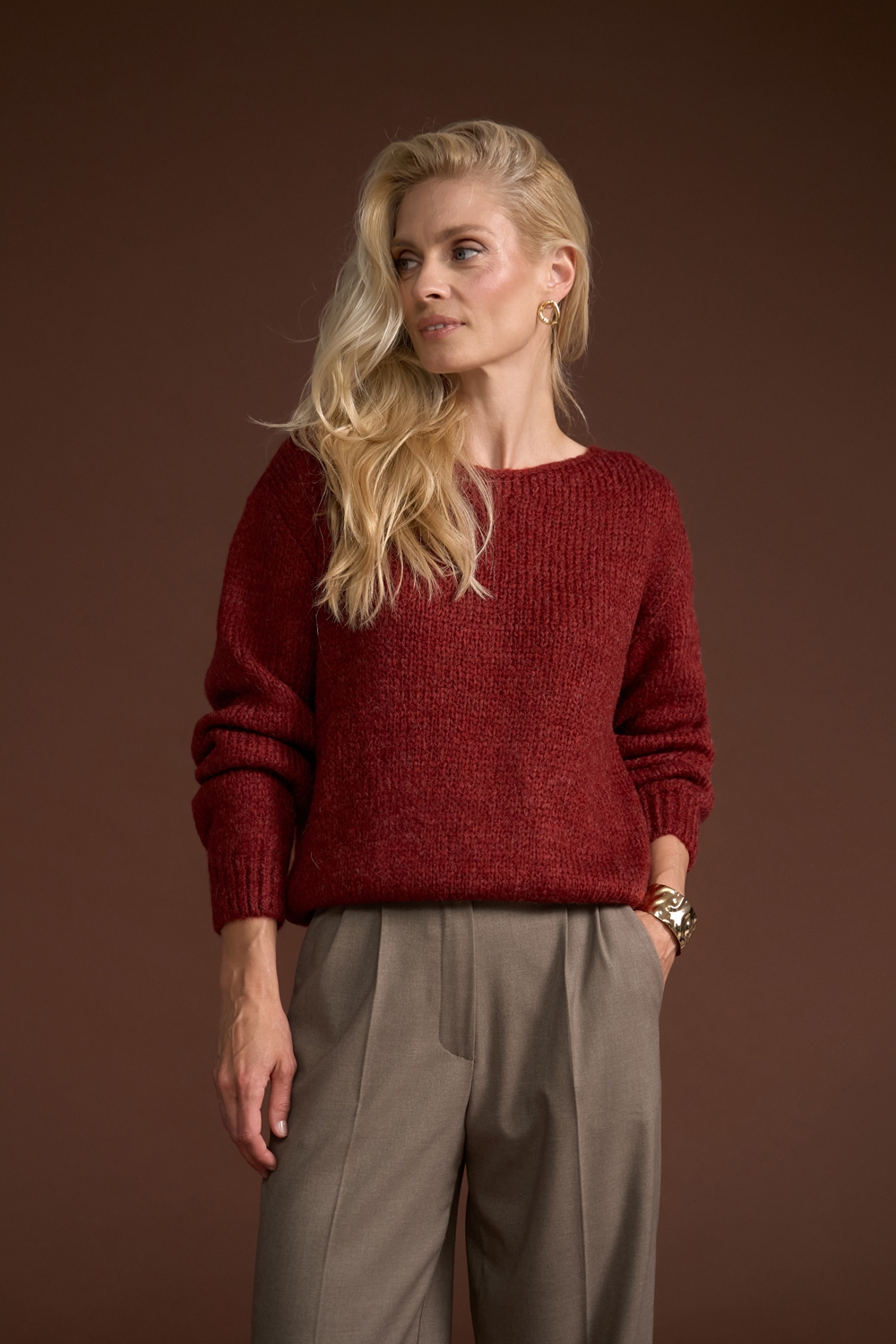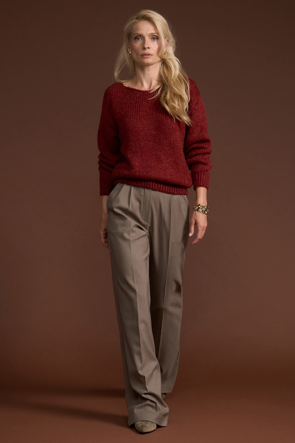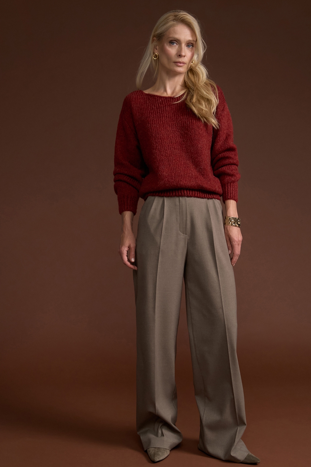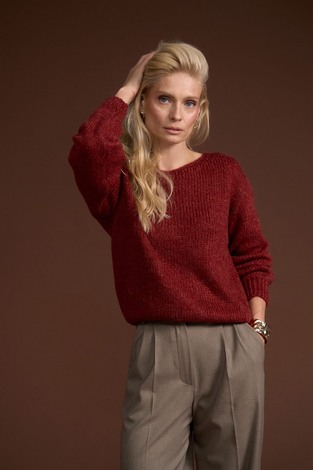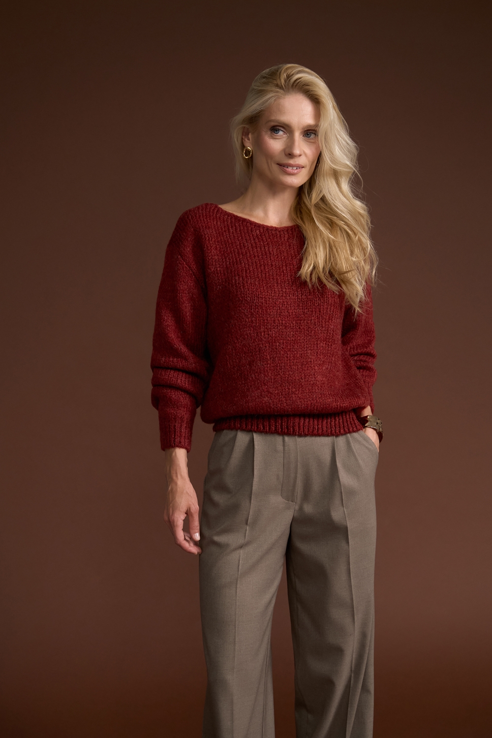 Стильний вкорочений джемпер виготовлений із преміальної вовняної пряжі з додаванням мохеру — м’який і приємний до тіла. Модель виконана стабільною гладкою в’язкою та доповнена еластичною в’язкою-резинкою на манжетах і по низу. Актуальна горловина у формі «човника», спущена лінія плеча.