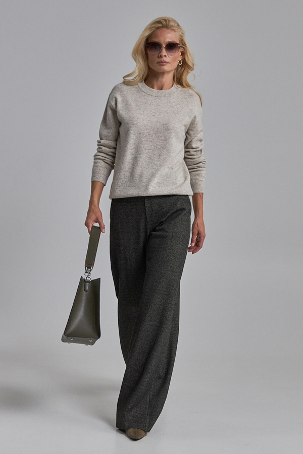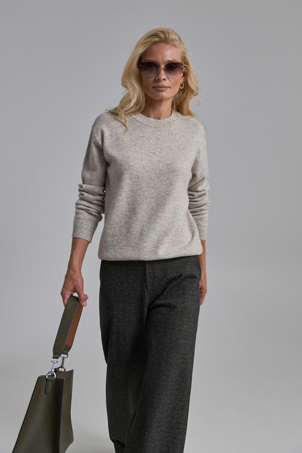 Джемпер виготовлений стабільним плетінням середньої щільності із вовниі ягняти із додаванням кашеміру. Надзвичайно м'який, невагомий та приємний до тіла. Вільний силует спущена лінія плеча додають розслабленості. По низу виробу та на рукавах фіксуюча манжет резинка.