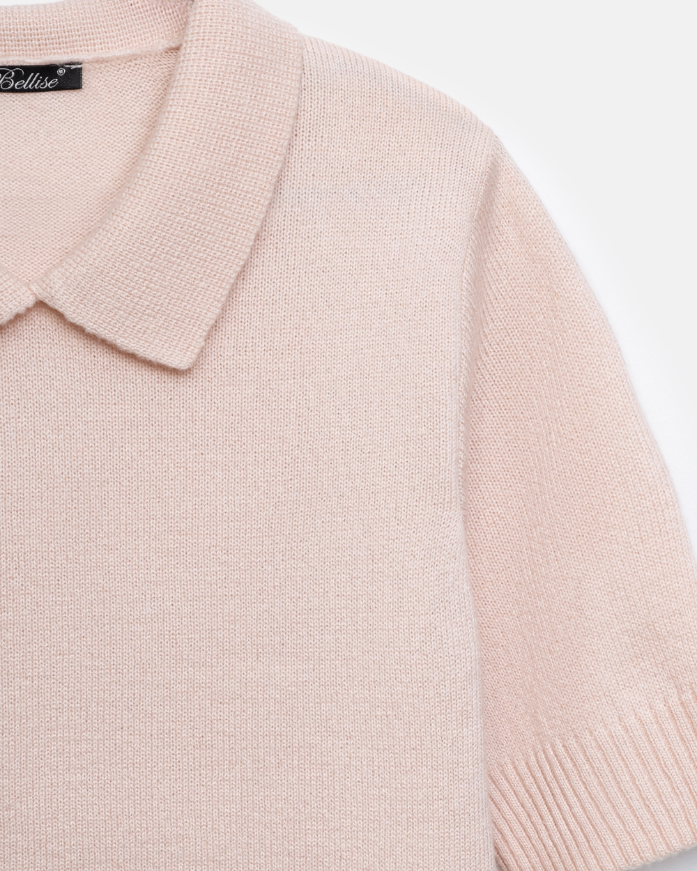 Стильний джемпер з преміальної пряжі бебі-альпаки та мериносової вовни. В’язка середньої щільності, приємна до тіла. Актуальний комірець поло та комфортний рукав до ліктя. По низу виробу фіксуюча резинка.