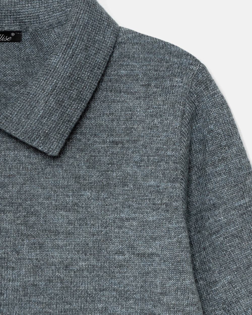 Стильний джемпер з преміальної пряжі бебі-альпаки та мериносової вовни. В’язка середньої щільності, приємна до тіла. Актуальний комірець поло та комфортний рукав до ліктя. По низу виробу фіксуюча резинка.