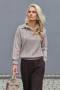 Стильний джемпер з преміальної пряжі бебі-альпаки та мериносової вовни. В’язка середньої щільності, приємна до тіла. Актуальний комірець поло та комфортний рукав до ліктя. По низу виробу фіксуюча резинка.