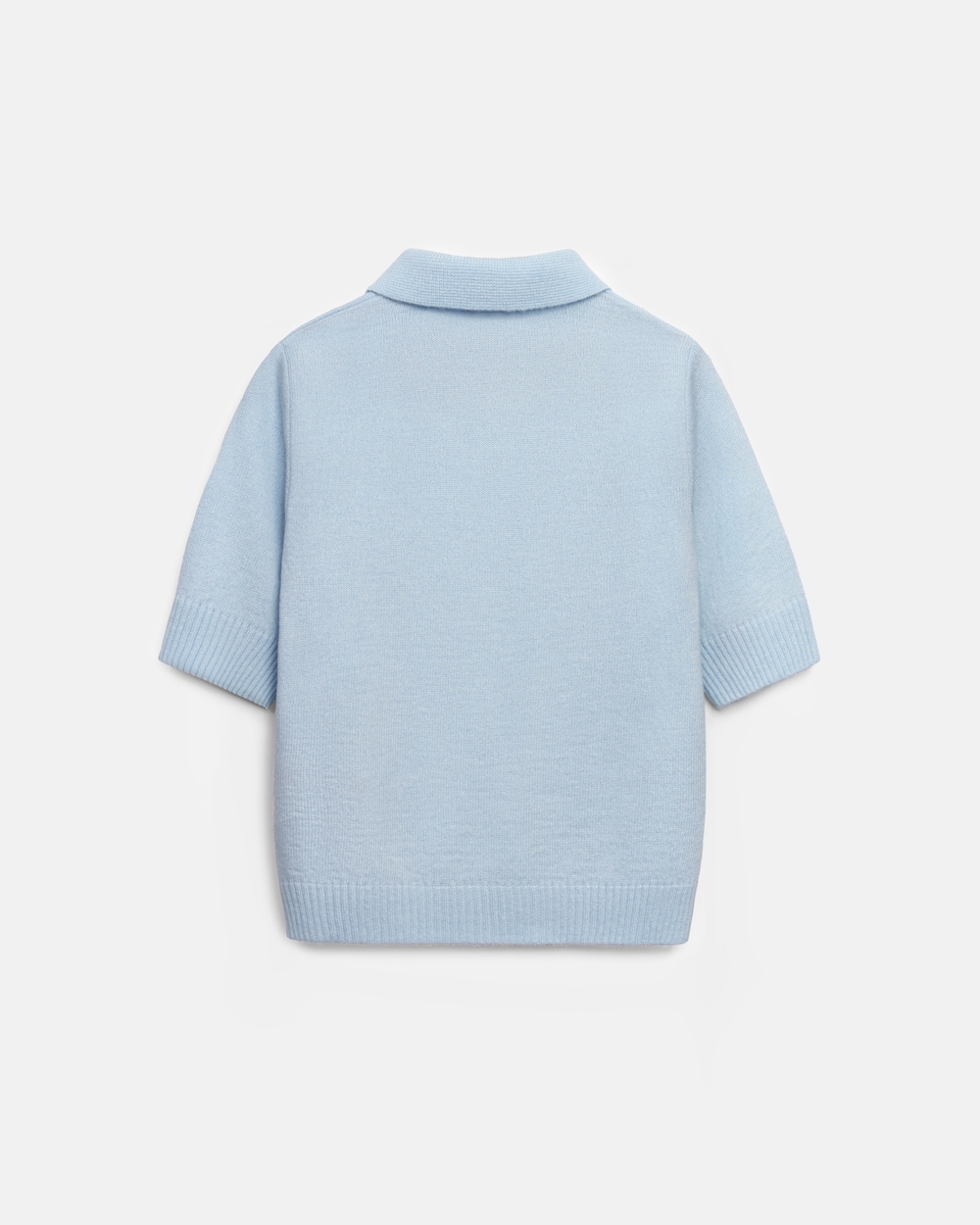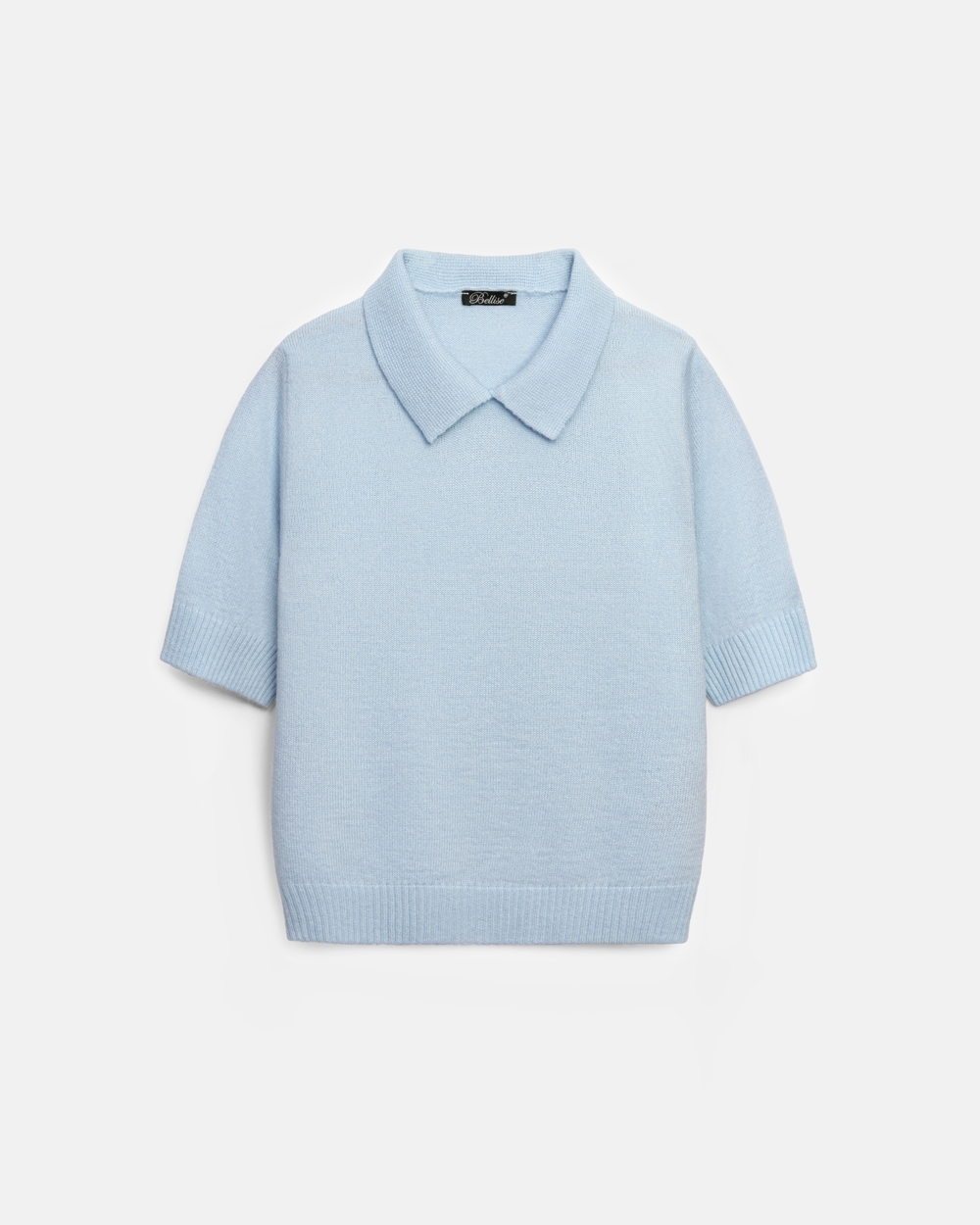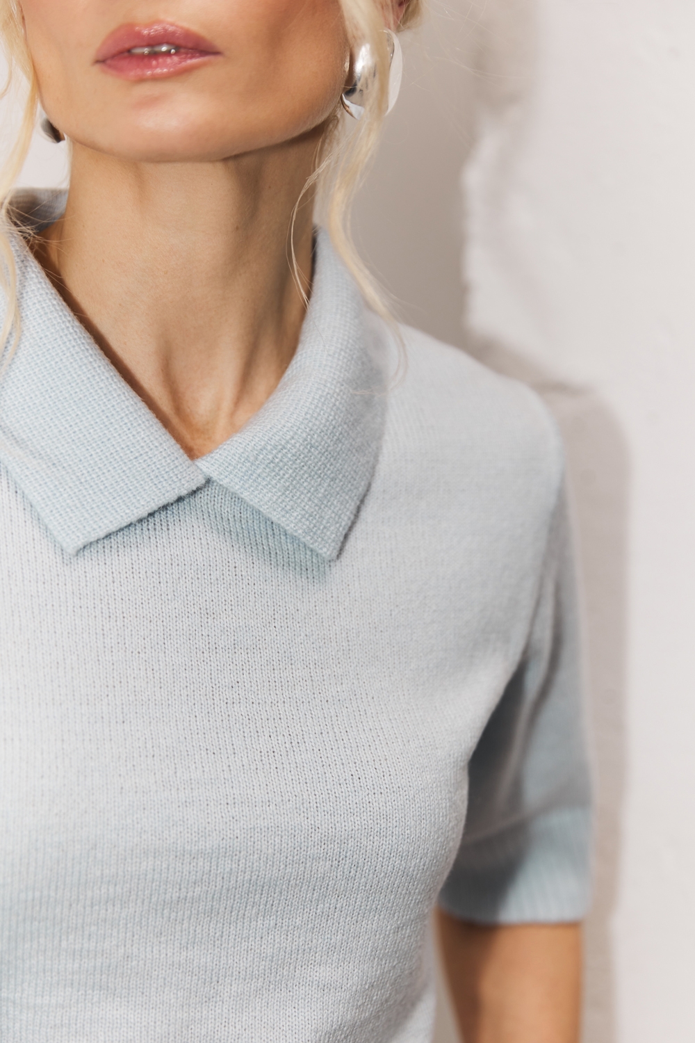 Стильний джемпер з преміальної пряжі бебі-альпаки та мериносової вовни. В’язка середньої щільності, приємна до тіла. Актуальний комірець поло та комфортний рукав до ліктя. По низу виробу фіксуюча резинка.