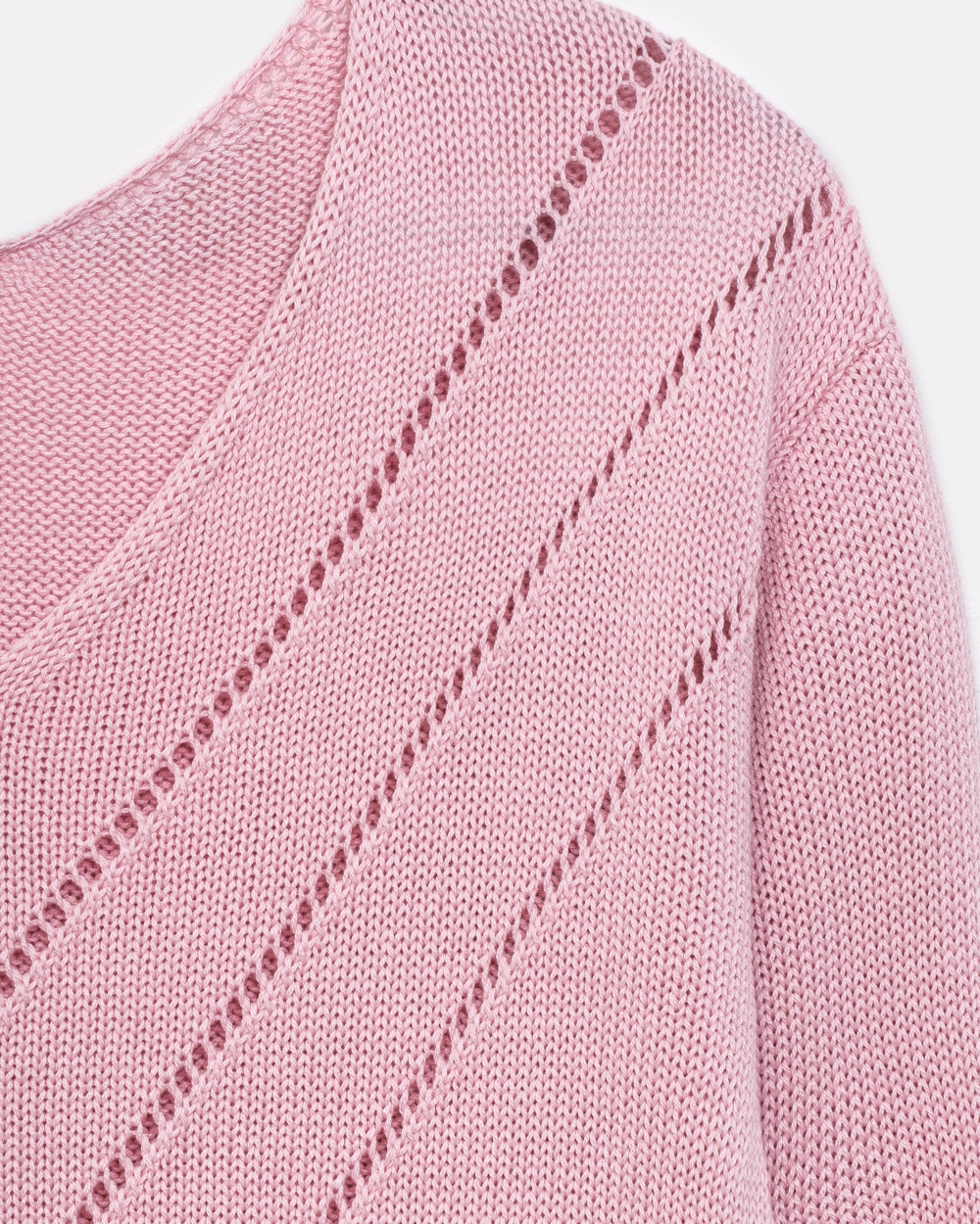 Лаконічний джемпер з акуратним візерунком спереду. Модель виготовлена з бавовняної пряжі з додаванням віскози щільним плетінням. Джемпер вільного силуету зі спущеною лінією плеча.