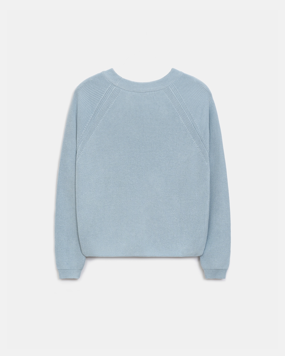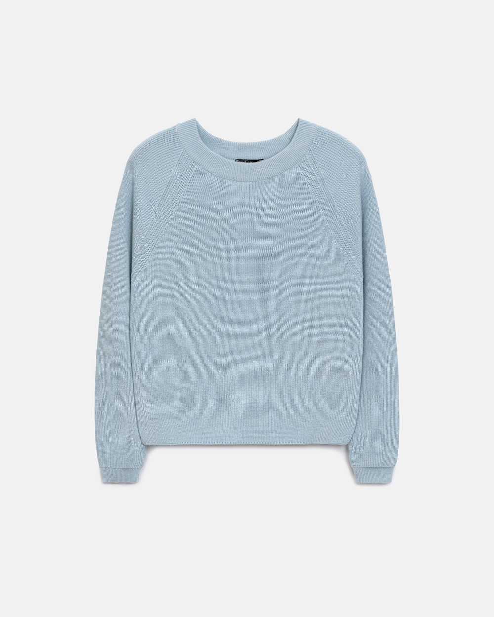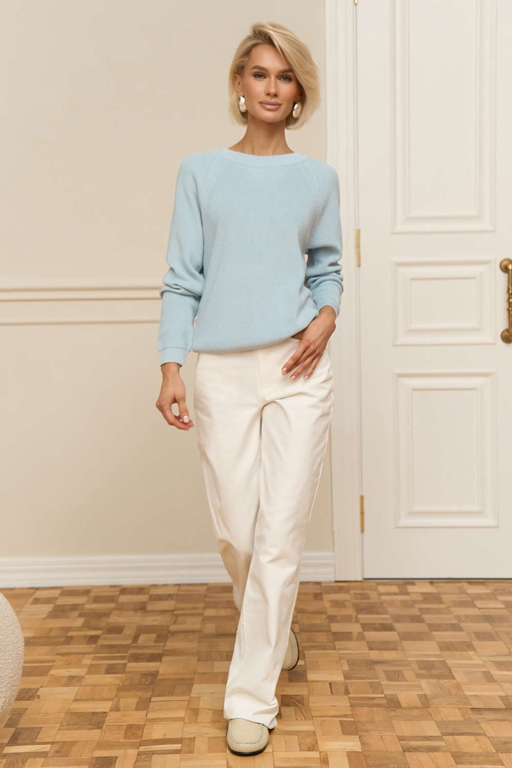 Базовий джемпер виконаний в’язкою середньої щільності з шовковистої, м’якої віскозної пряжі з додаванням бавовни. Модель комфортного вільного силуету.