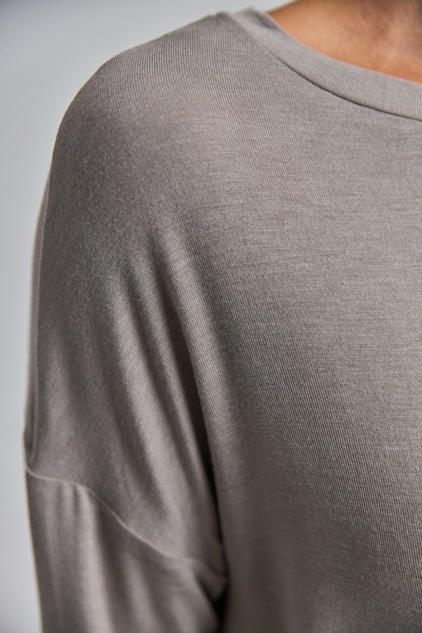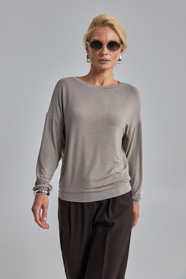 Лаконічний джемпер вільного силуету із м’якого, приємного на дотик трикотажу, що добре тягнеться та красиво драпірується.