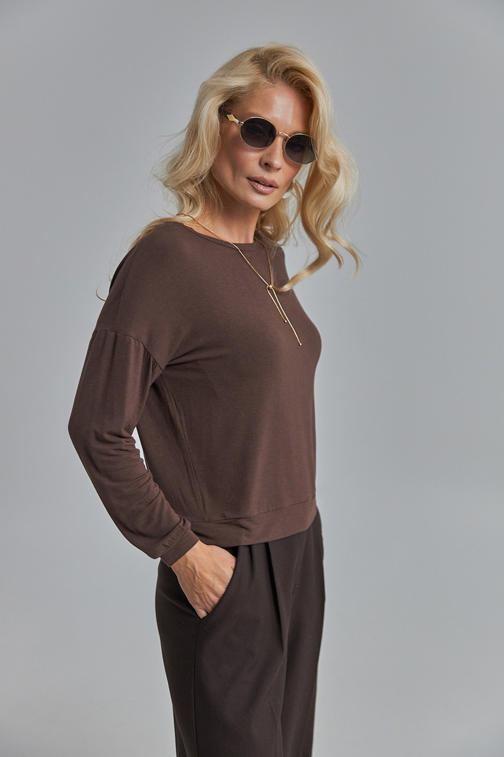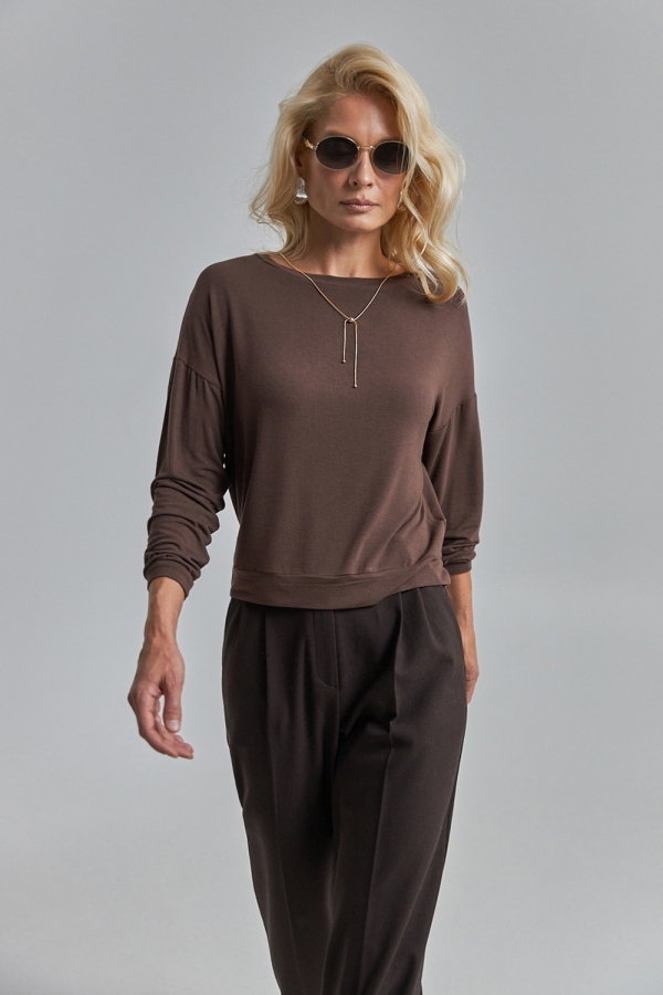 Лаконічний джемпер вільного силуету із м’якого, приємного на дотик трикотажу, що добре тягнеться та красиво драпірується.