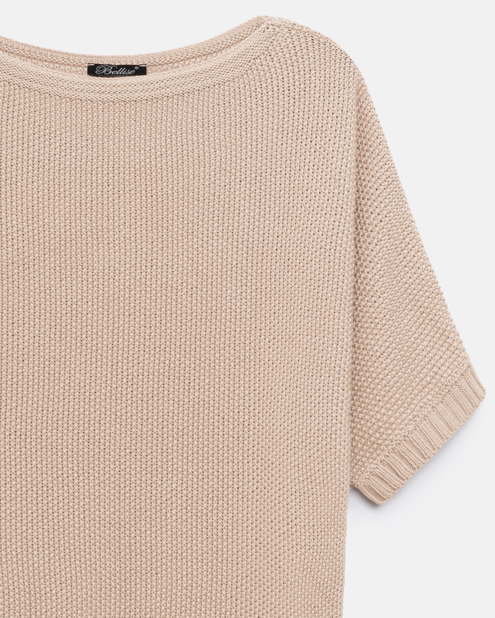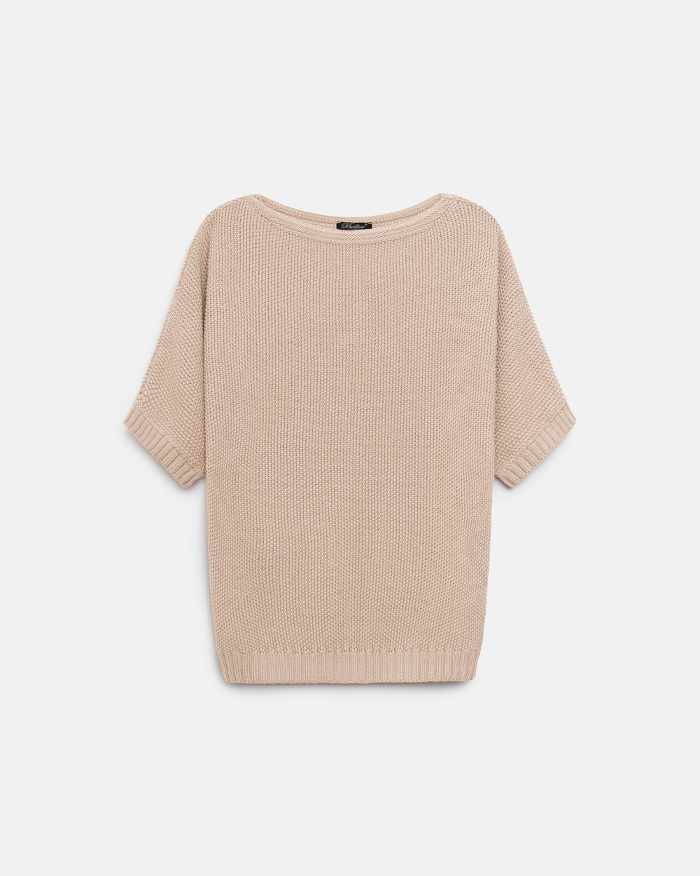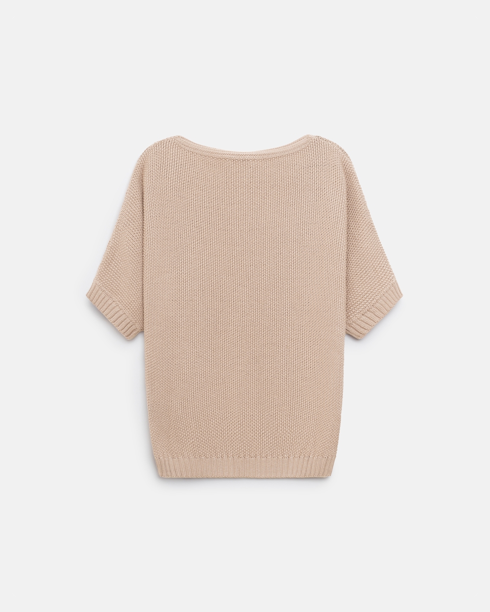 Бавовняний джемпер із лаконічною горловиною човник. Виконаний фактурною в'язкою середньої щільності, м'який та приємний до тіла. Комфортний рукав "летюча миша". По низу виробу фіксуючий манжет-резинка.