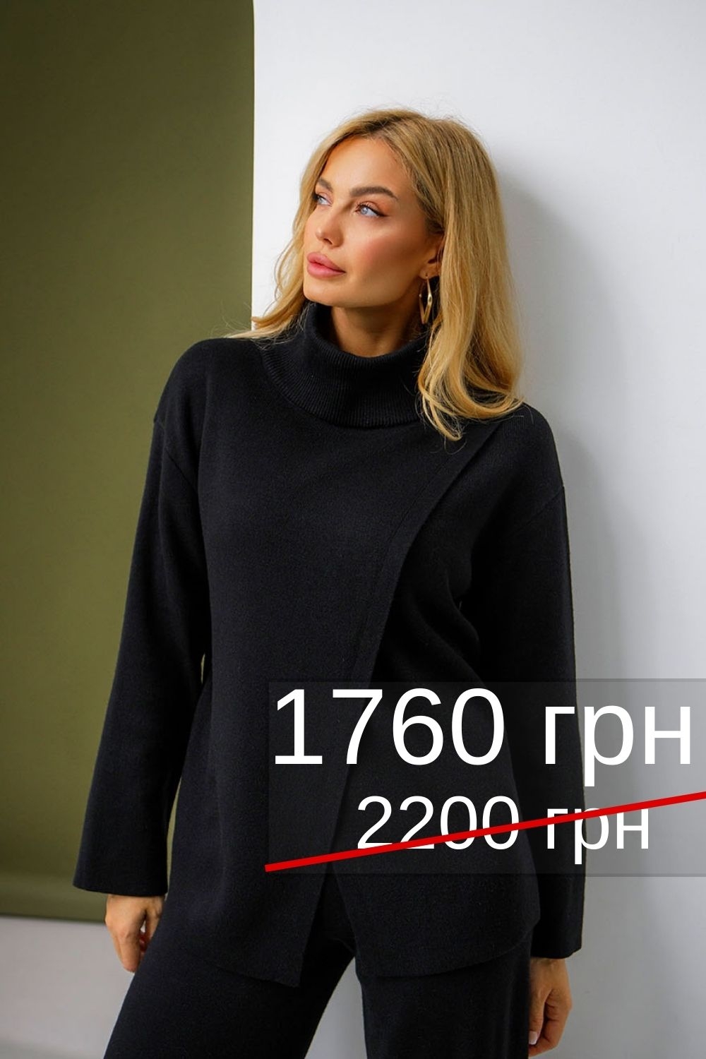 Стильний джемпер на запах виконаний з напіввовняної пряжі. Виріб середньої щільності з трендовим акцентом легко доповнює будь-які образи.