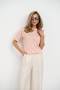 Джемпер поло виконаний з ніжної напіввовняної пряжі в трендовій кольоровій гамі. Виріб середньої товщини зв'язаний фактурним переплетенням "коси".