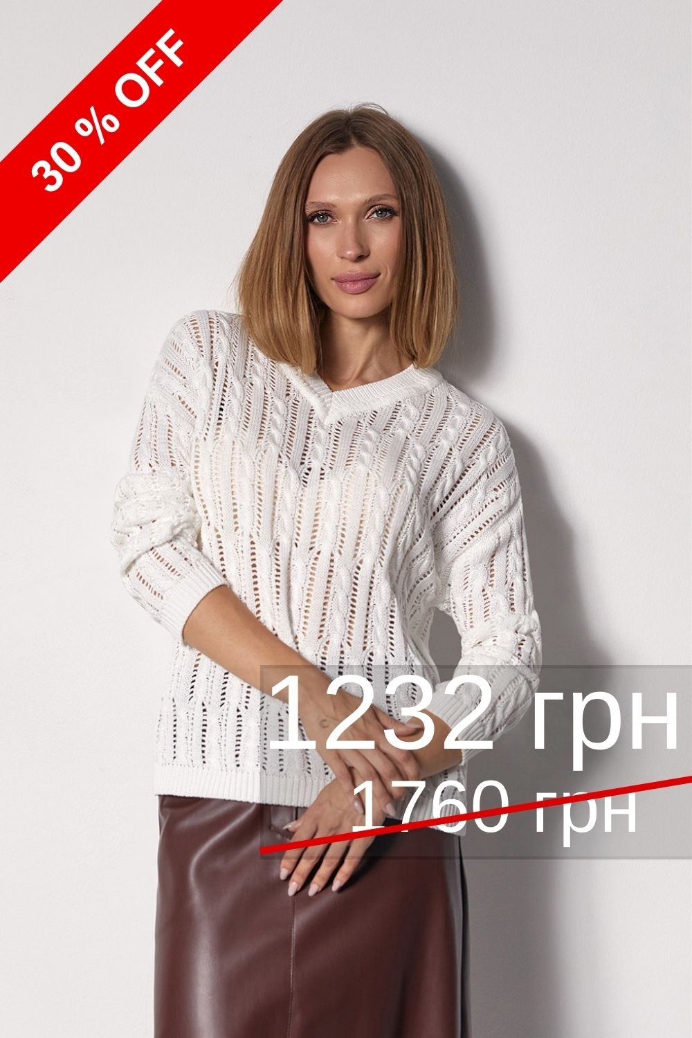 Джемпер з косами вільного крою з натуральної, приємної до тіла пряжі з включенням бавовни та віскози. Манжети та низ виробу оздоблені розслабленою резинкою. Легко декорується.