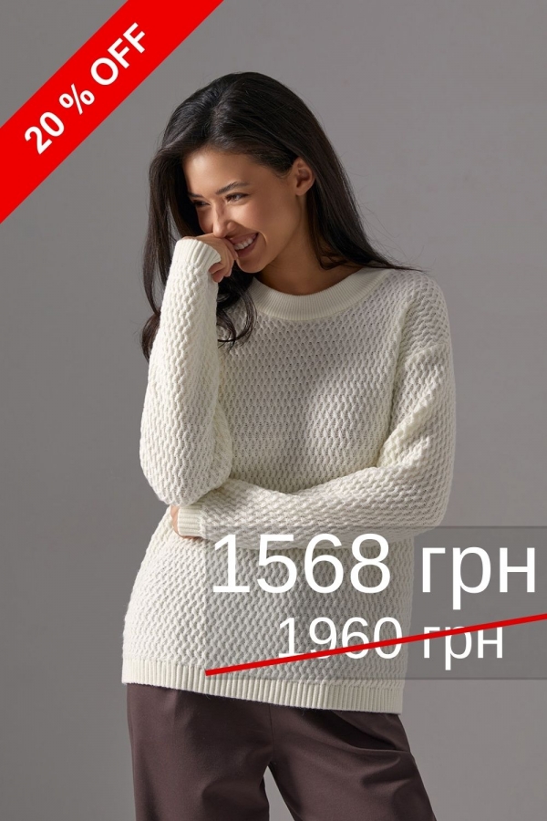 Джемпер з охайним візерунком з напіввовняної пряжі з включенням віскози. Середньої щільності, розслаблений крій.