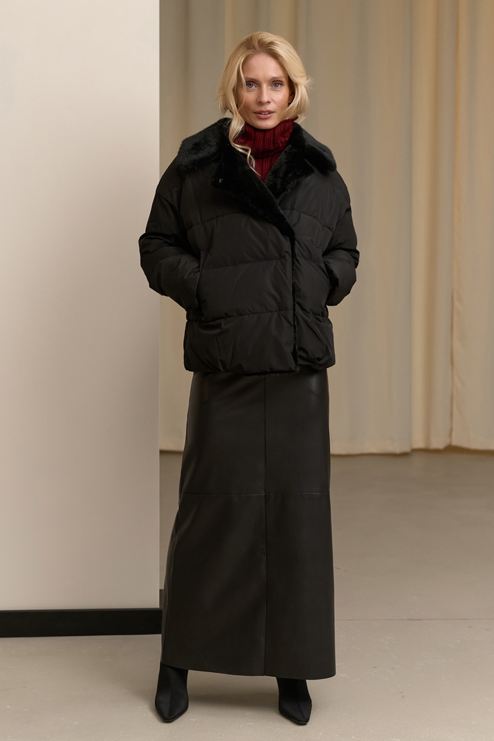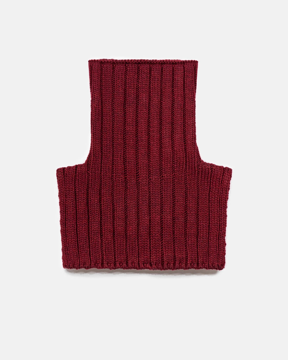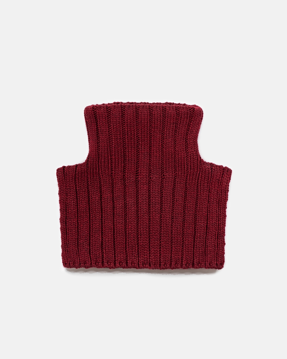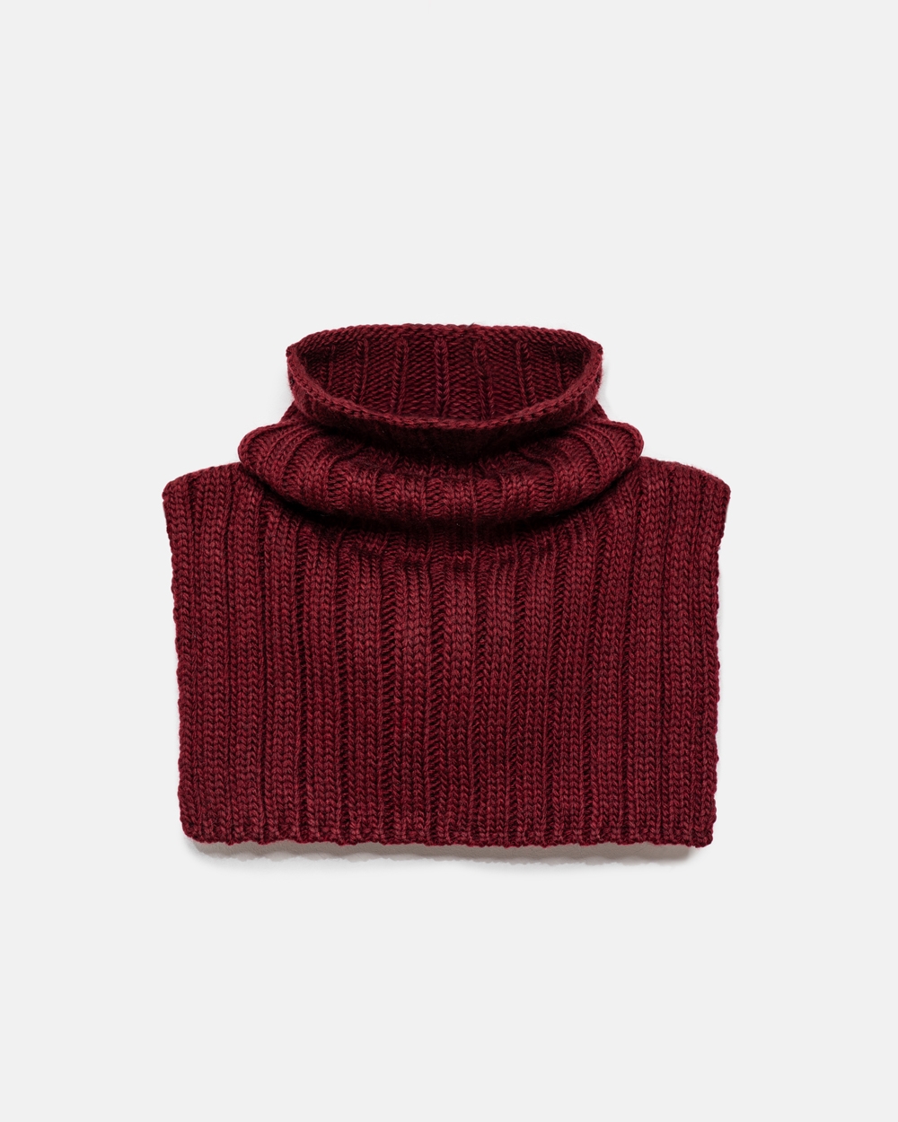 Теплий напіввовняний хомут із коміром-стійкою з відворотом. Виготовлений щільною в’язкою з м’якої, приємної до тіла пряжі. Широка частина виробу надійно захищає груди та спину.