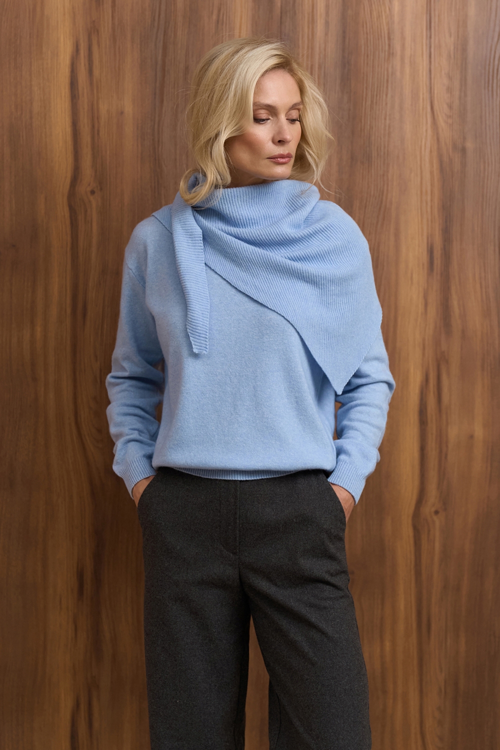 Стильна хустинка виготовлена з пряжі, що містить вовну ягняти та кашемір. М’яка, приємна до тіла. Актуальний аксесуар для доповнення образу.