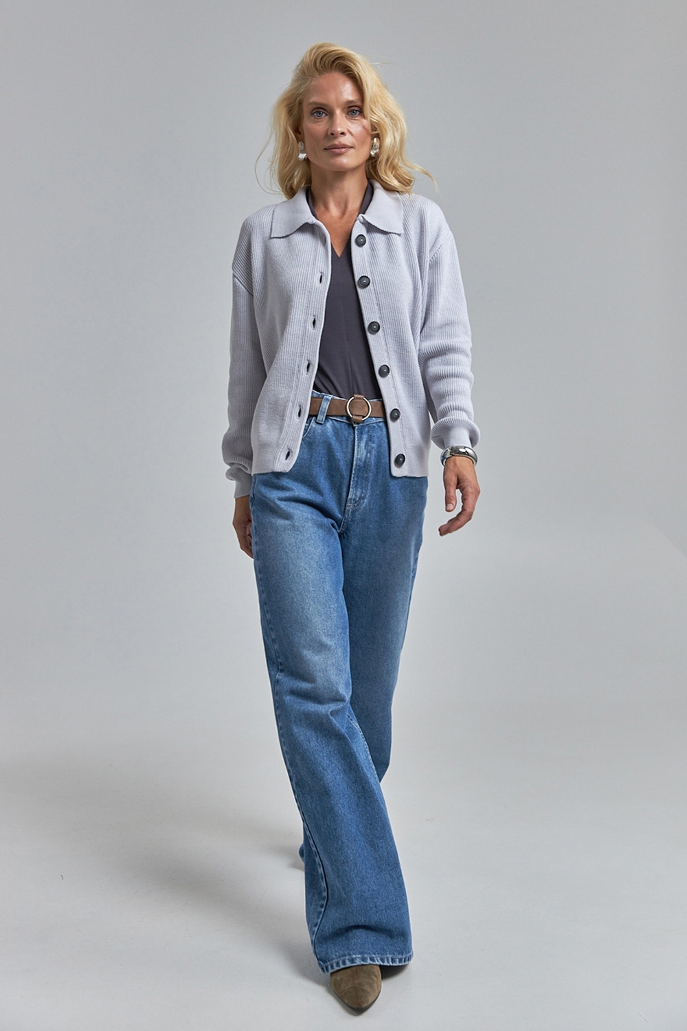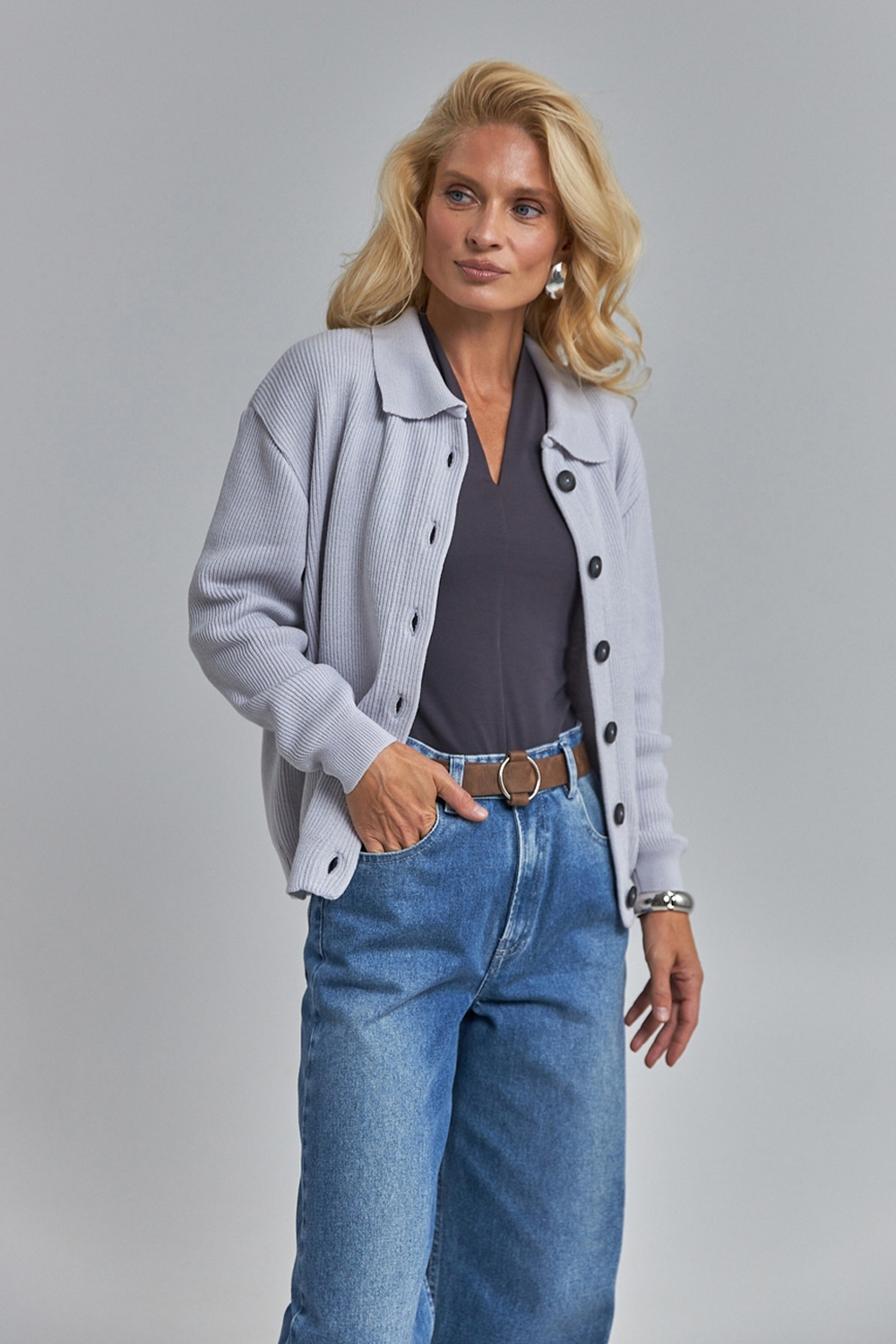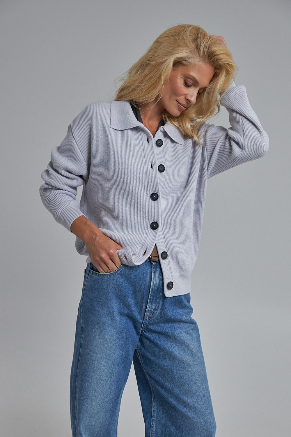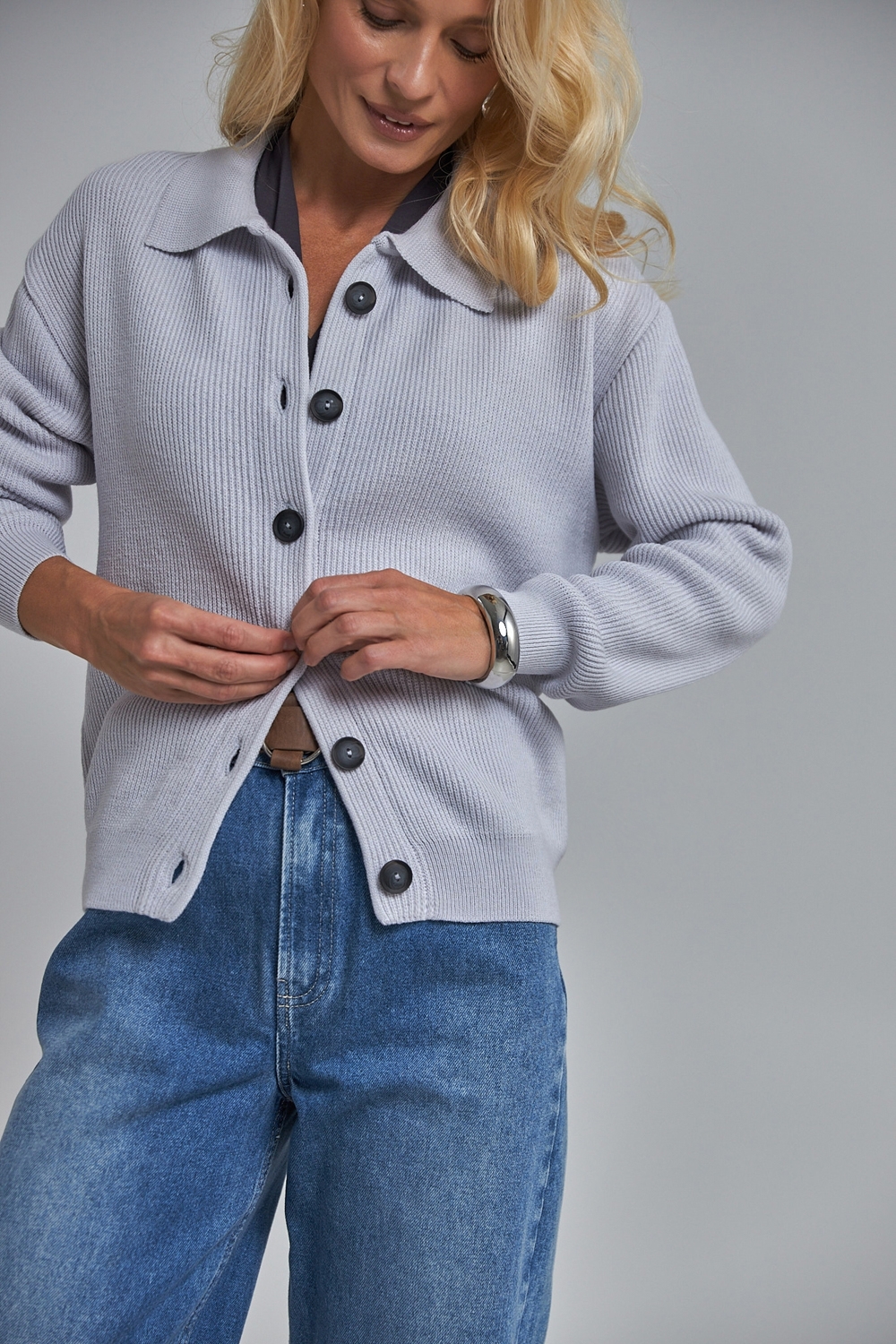 Трендовий кардиган виготовлений із преміальної пряжі із високим вмістом вовни мериноса та альпаки. Виріб приємний до тіла, виконаний щільної стабільною в'язкою. Лаконічний дизайн доповнений акцентними гудзиками.