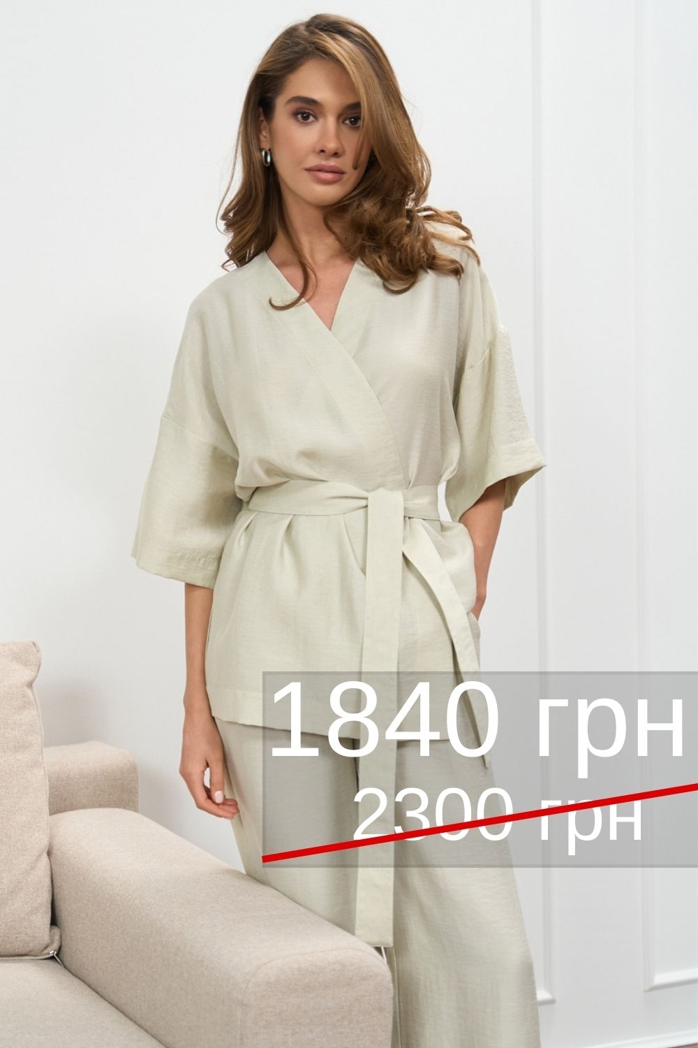 Стильне кімоно виконане з натуральної тканини з включенням віскози та льону. Приємне до тіла, середньої щільності.