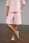 Елегантний літній костюм, що складається із сорочки вільного фасону та штанів палаццо. Виготовлений із легкої, "дихаючої" тканини із додаванням віскози та льону. Матеріал має текстуру з ефектом жатки, гарно драпірується.