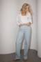 Елегантний літній костюм, що складається із сорочки вільного фасону та штанів палаццо. Виготовлений із легкої, "дихаючої" тканини із додаванням віскози та льону. Матеріал має текстуру з ефектом жатки, гарно драпірується.