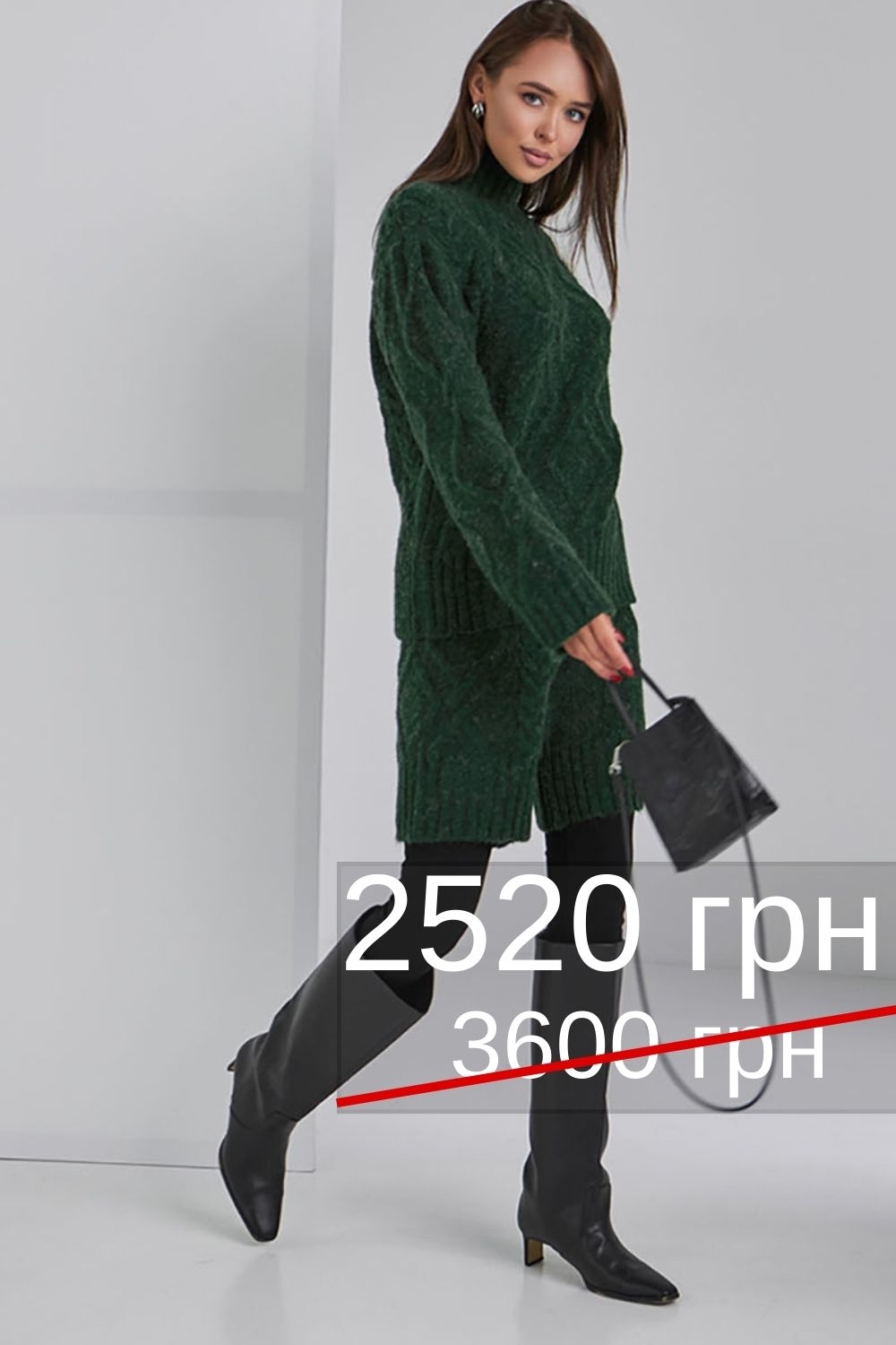 Жіночий затишний комплект - светр та шорти, виконаний з теплої вовняної пряжі з мохером та лайкрою.