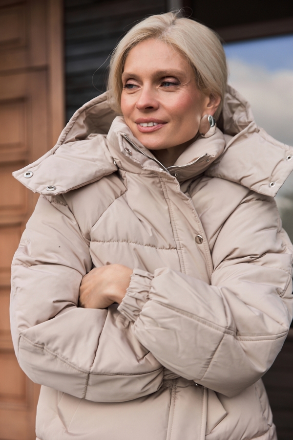 та пошив🥰 Ще капюшон порадував - такий зручний (для мене це важливо 😊) Ну і колір бежевий - саме такий як хотіла, чудово комбінується з різними відтінками 🤎 (хоча мені, якщо чесно, важко було вибрати колір, бо і сірий і молочний також дуже гарні☺️) Розмір також підійшов, сів гарно, ще й запас є для більш теплого обʼємного одягу). І плюс маленький бонус - знижка на таку шикарну річ😉 Дуже-дуже задоволена покупкою 🥰