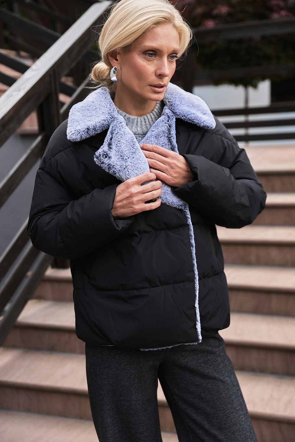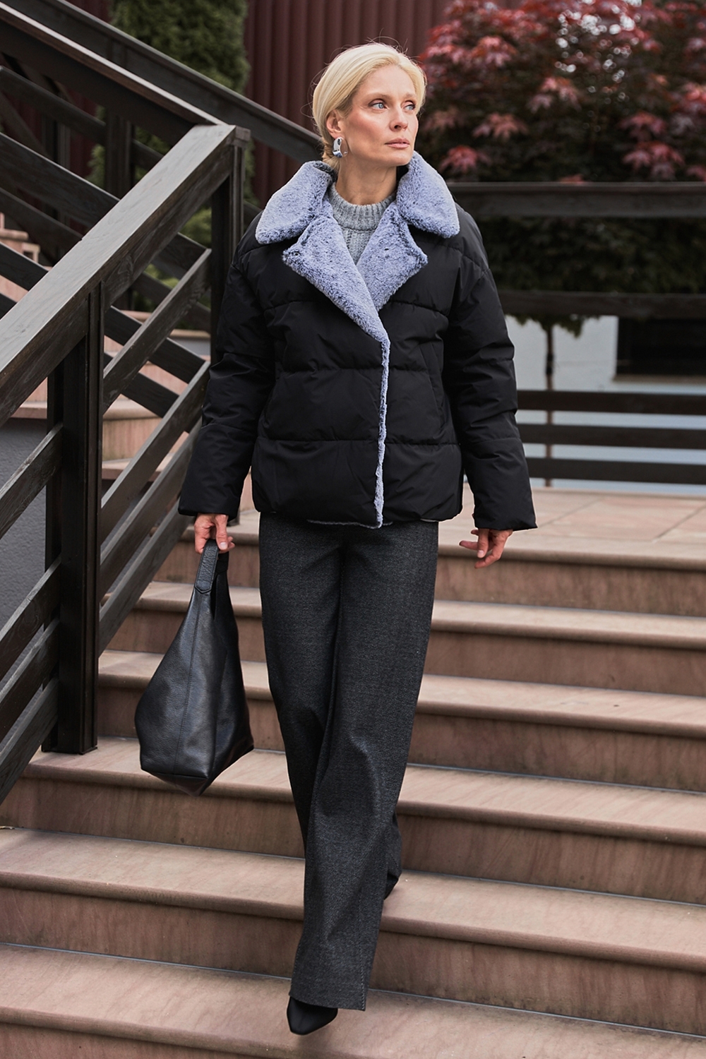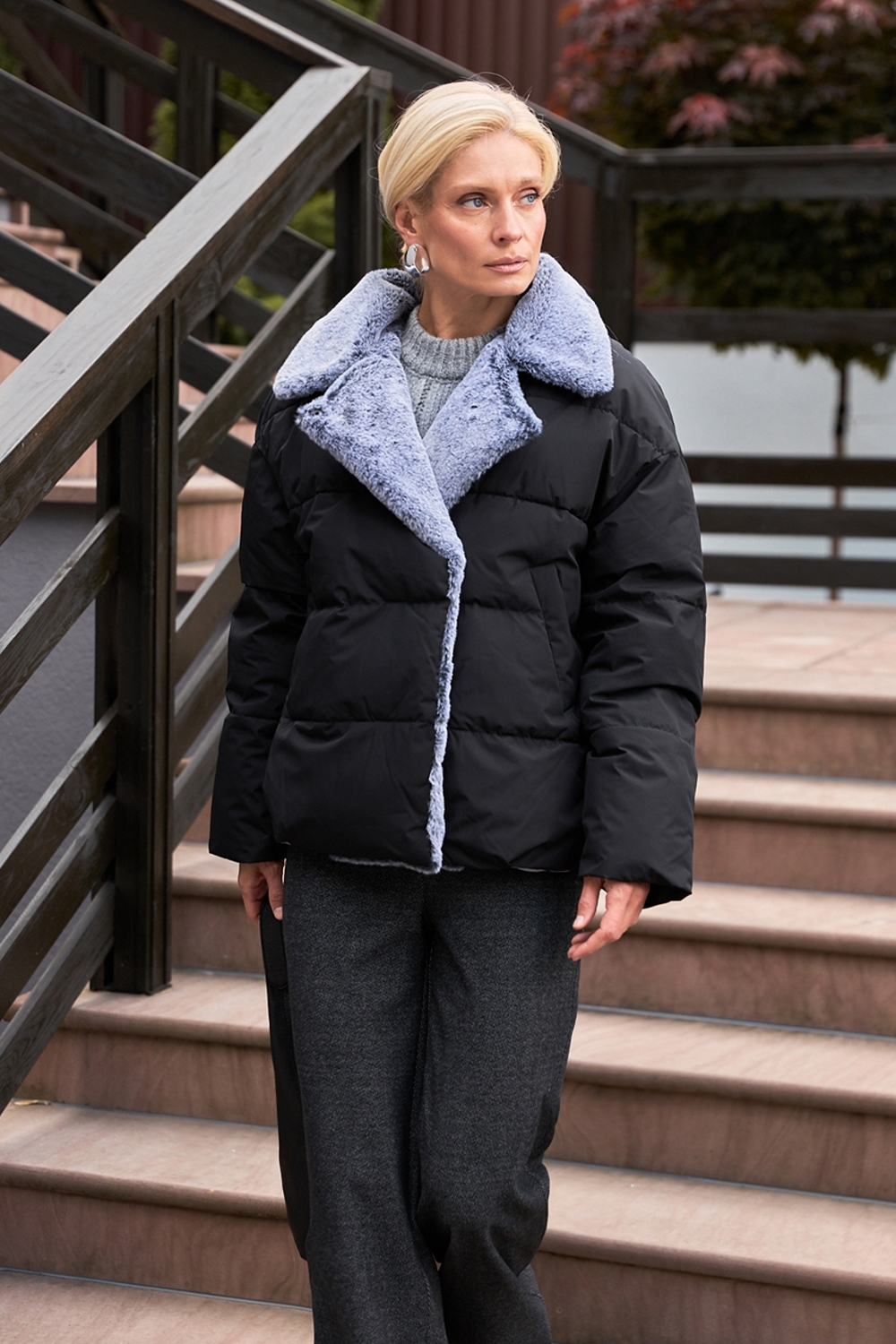 Елегантна куртка в стилі кежуал з водовідштовхувальної люксової тканини. Оздоблена хутром преміальної якості.