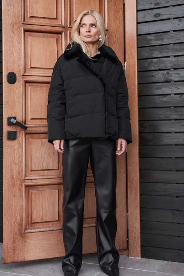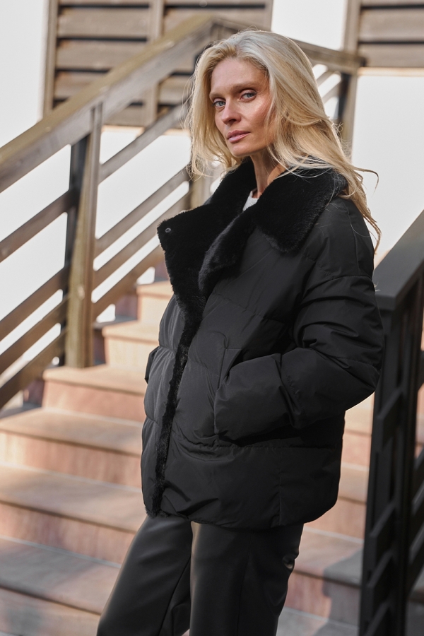 Елегантна куртка в стилі кежуал з водовідштовхувальної люксової тканини. Оздоблена хутром преміальної якості.